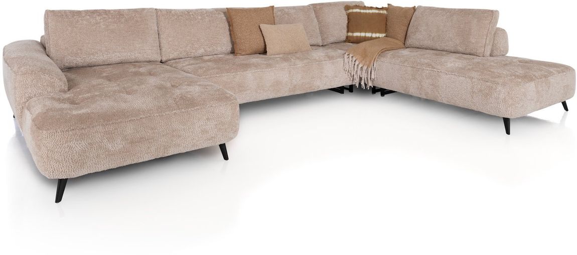 Royale U-bank Belluno van Henders & Hazel is de ideale keuze voor wie graag ruimte heeft, of het nu gaat om een groot gezin of om gezellige momenten met vrienden. De bank is bekleed met een zachte, warme beige stof die direct een uitnodigende sfeer creëert in de woonruimte. De subtiele gecapitonneerde details geven Belluno een kenmerkende, elegante uitstraling, terwijl de slanke zwarte pootjes zorgen voor een tijdloze finishing touch.