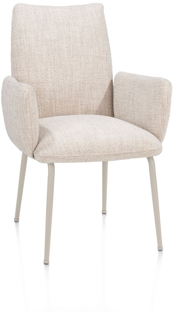 De Henders en Hazel Bovina armstoel combineert een comfortabele kuip met een zachte, licht gemêleerde stoffering. De armleuningen geven extra ondersteuning, terwijl het slanke metalen onderstel zorgt voor een luchtige uitstraling aan de eettafel. Een fijne keuze voor lange diners en gezellige momenten aan tafel.
