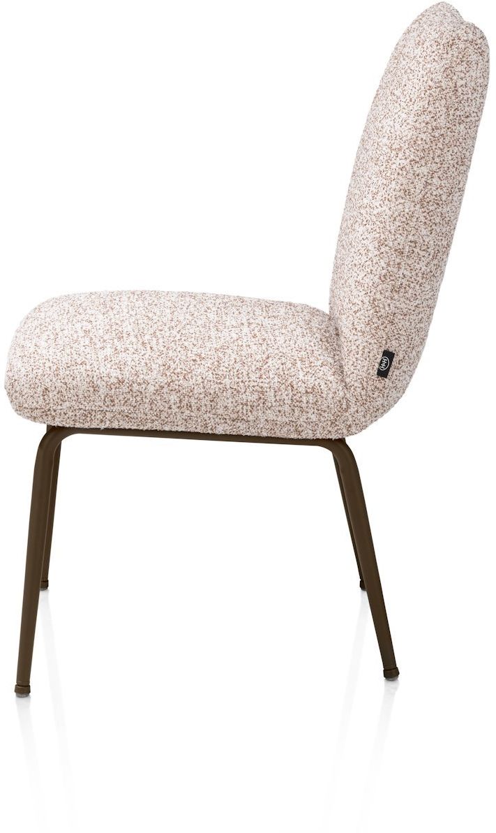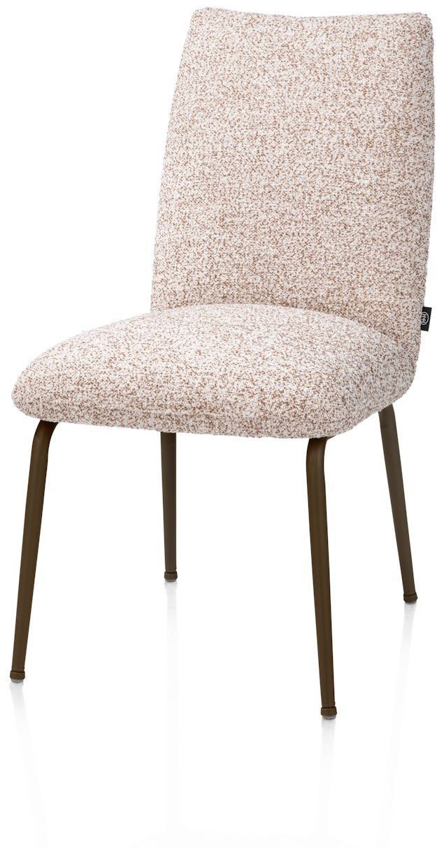 Eetkamerstoel Bovina van Henders & Hazel nodigt direct uit om aan te schuiven dankzij de vriendelijke, afgeronde vormen. De zachte zitting in een warme koperkleur geeft de stoel een subtiele retro-uitstraling, terwijl het robuuste stalen onderstel in bruin zorgt voor een krachtige en warme basis. Samen vormen deze elementen een harmonieus geheel dat perfect past binnen een modern of retro interieur.