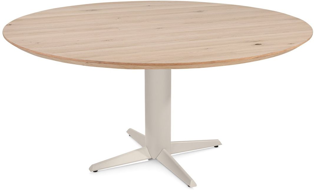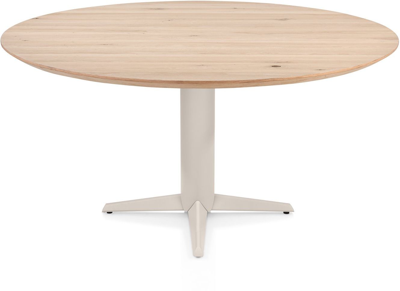 Eettafel Caletta van Henders en Hazel brengt een vriendelijke, lichte sfeer in de eetruimte. Het ronde ontwerp nodigt uit tot samen tafelen, waarbij iedereen gelijkwaardig aan tafel zit. Het lichte eikenhouten blad in combinatie met het crèmekleurige onderstel geeft de tafel een frisse, Scandinavische uitstraling. Caletta laat zich moeiteloos combineren met Scandinavische eetkamerstoelen en vormt zo een harmonieus geheel waarin comfort en stijl samenkomen.
