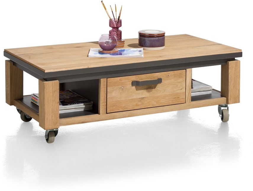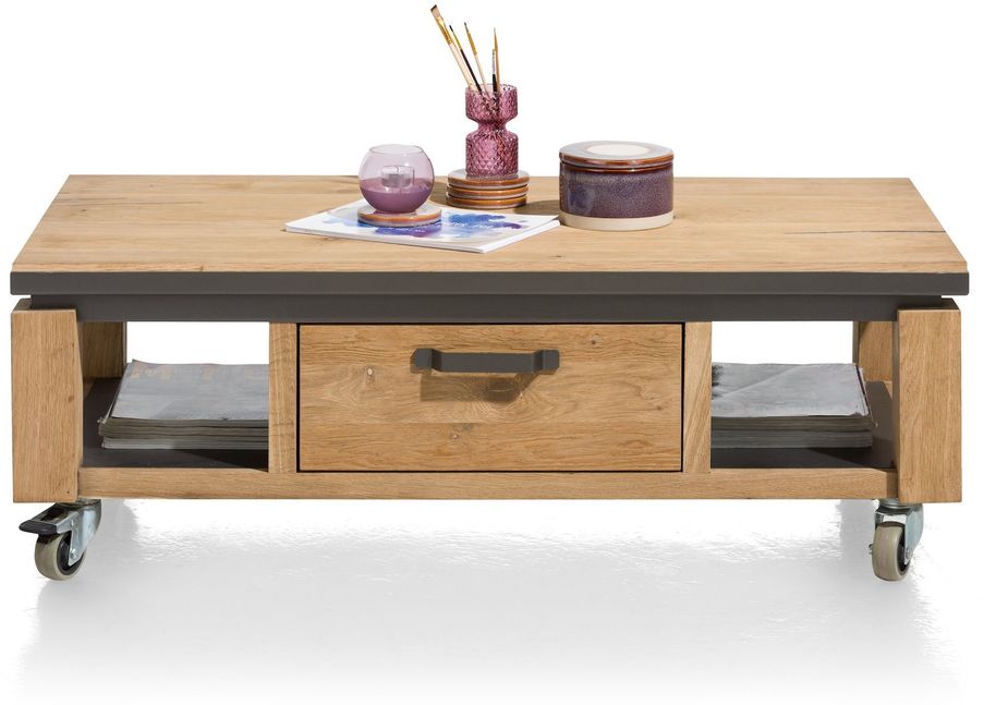 Salontafel Farmland van Henders en Hazel combineert stoer met stijlvol. De Farmland serie bestaat uit ongepolijste meubels die tegen een stootje kunnen. De meubels zijn gemaakt van eiken hout in een warme kleur. De metalen accenten en grepen geven de tafel en stoere touch. De tafel is voorzien van wielen die geschikt zijn voor zowel laminaat als plavuizen. De open vakken creëeren luchtigheid terwijl je in de lade spullen kunt opbergen. Farmland is goed te combineren met de andere meubels uit de serie.