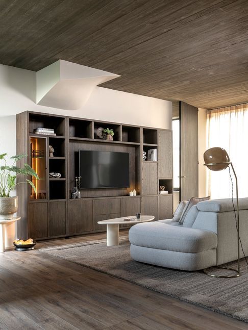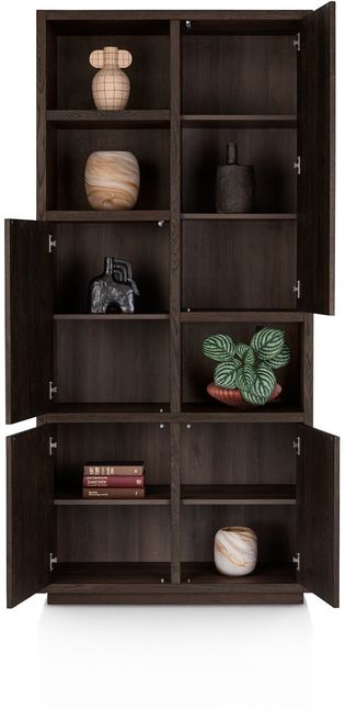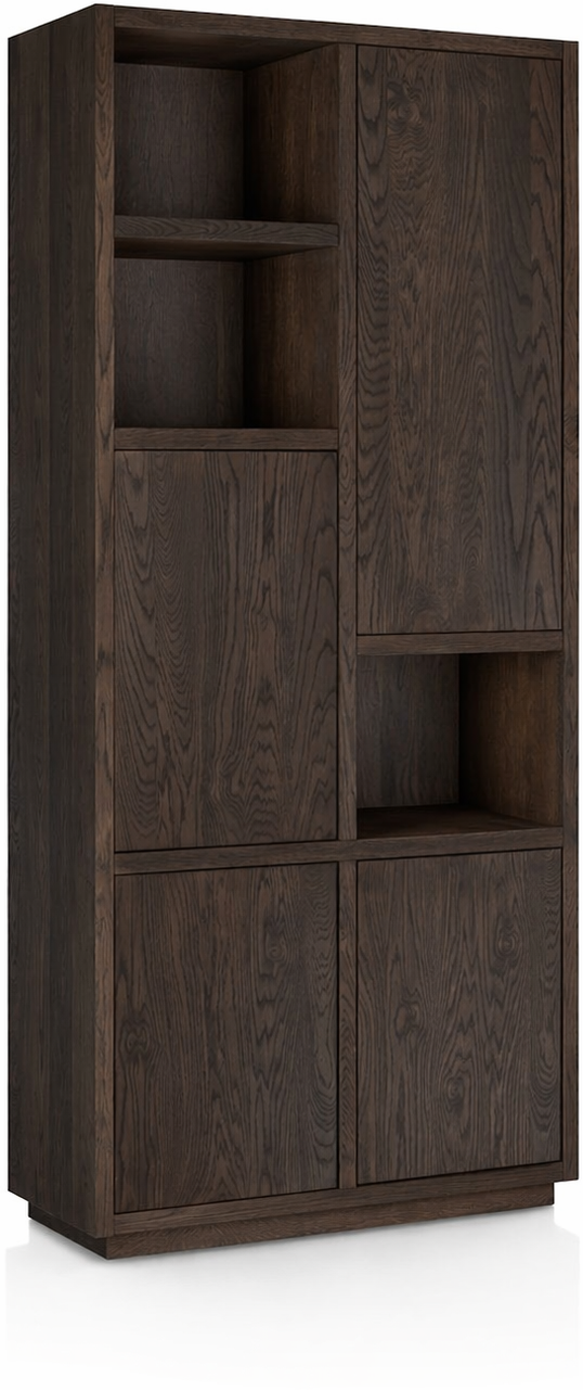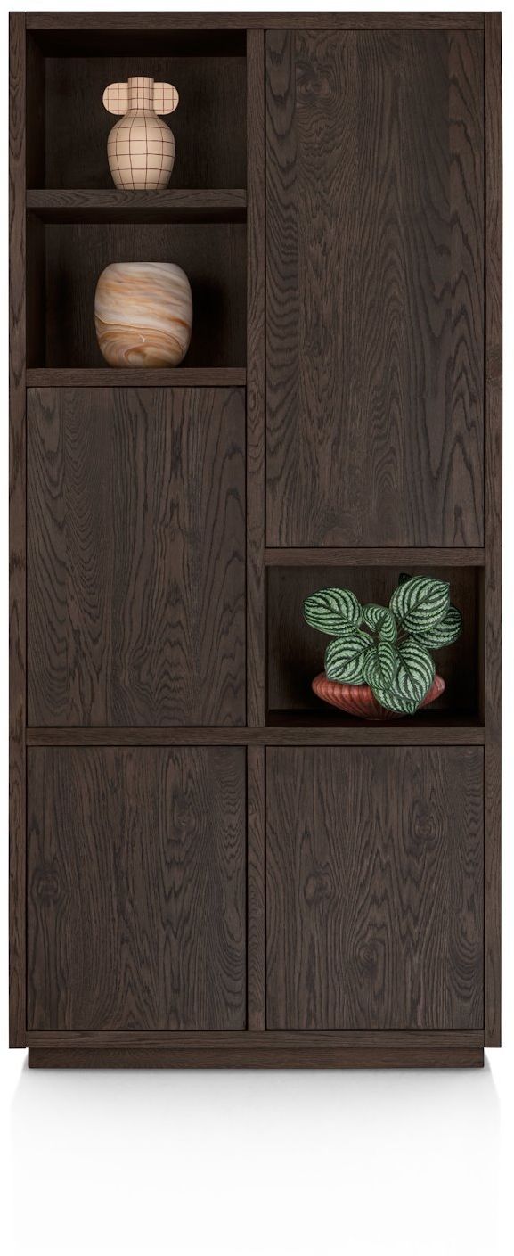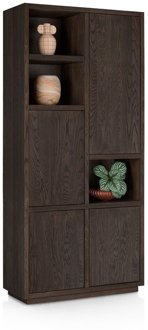 Opbergkast Gijon van Henders en Hazel is een stijlvolle kast die functionaliteit en design samenbrengt. De asymmetrische indeling en de diepe eikenhouten tint geven het meubel een eigentijdse uitstraling die goed tot zijn recht komt in diverse woonstijlen. De combinatie van open en gesloten vakken biedt de mogelijkheid om persoonlijke items zichtbaar te presenteren en andere spullen netjes uit het zicht op te bergen. Hierdoor vormt Gijon een praktische en veelzijdige toevoeging aan de woonruimte.