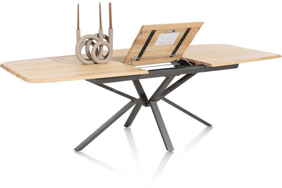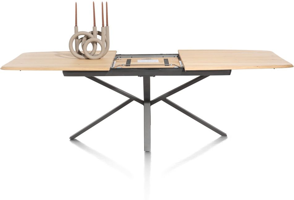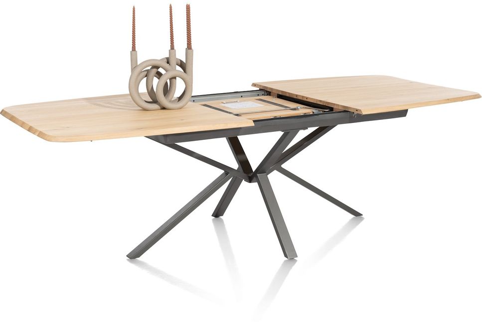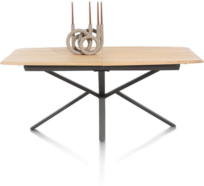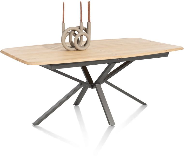 Eettafel Home uit de collectie van Henders & Hazel is een landelijke tafel met een luxe uitstraling. Deze opvallende tafel heeft een massief eiken tafelblad en dat gedragen door een speelse kruispoot gemaakt van metaal. Dankzij het uitschuifbare tafelblad creëer je gemakkelijk meer ruimte om uitgebreid te tafelen met vrienden en familie. Naast getoond model is eettafel Home tevens verkrijgbaar in diverse andere uitvoeringen.