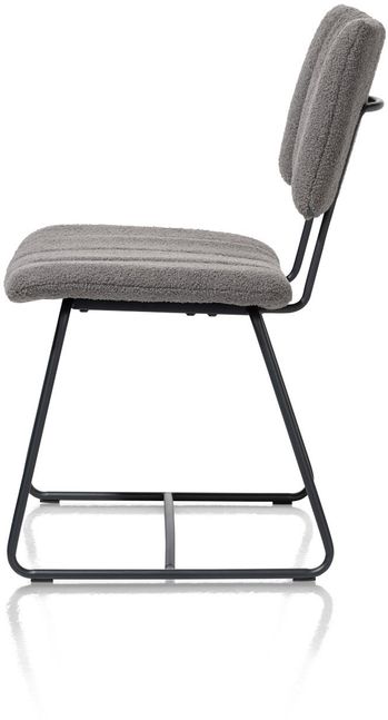 Eetkamerstoel Marcel van Henders & Hazel is door het opvallende lijnenspel een echte eyecatcher in het interieur. Het stoere zwarte frame, dat vanuit de poten doorloopt naar de rugleuning, geeft Marcel een moderne uitstraling. De stoel is bekleed met een zachte antracietkleurige stof met speelse stiksel. Extra handig: de handgreep aan de achterkant maakt dat de stoel eenvoudig te verplaatsen is.
