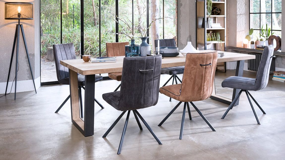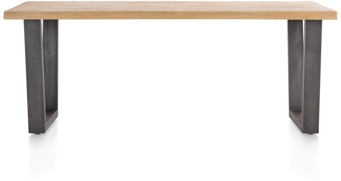 Eettafel Metalox van het merk Henders en Hazel is een stoere eettafel met een eikenfineer blad. Het tafelblad rust op een metalen X-poot. De combinatie van eikenfineer en metaal geeft de tafel een industriële look.