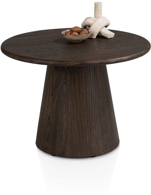 Bijzettafel Ravello van Henders en Hazel combineert functionaliteit met een tijdloos ontwerp. De ronde tafel is uitgevoerd in donker eikenfineer en rust op een stevige conische poot, wat zorgt voor stabiliteit en een moderne uitstraling. Dankzij het compacte formaat is deze tafel eenvoudig te plaatsen naast de bank of fauteuil. Combineer bijzettafel Ravello met de andere meubels uit de Ravello collectie voor een stijlvol geheel.