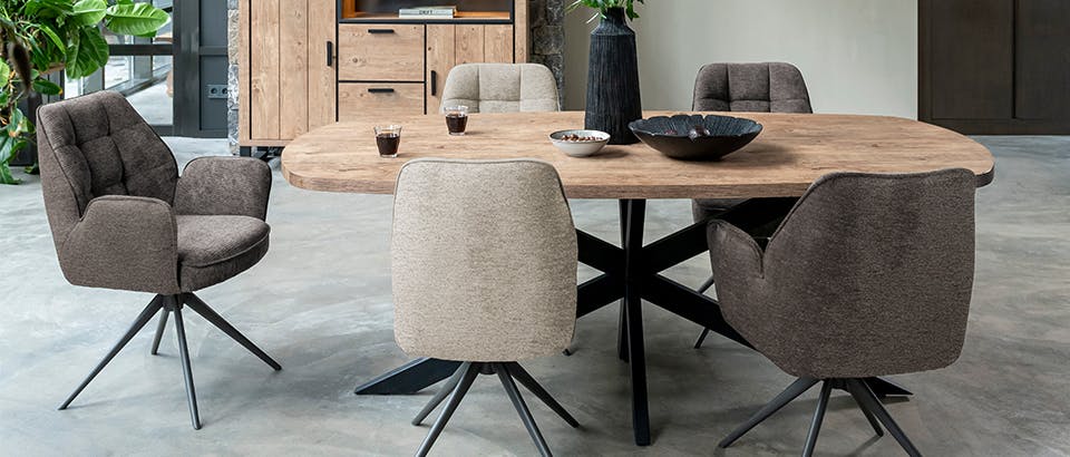 Het natuurlijke maar eveneens stoere karakter van hout springt in het oog bij de meubels van Henders en Hazel. Naturel en onbehandeld waardoor de rustieke schoonheid volledig tot zijn recht komt. Of hout dat juist handmatig oud gemaakt is, wat het meubel een doorleefd en oud karakter geeft. Neem bijvoorbeeld het Henders en Hazel woonprogramma Kodiak dat op ambachtelijke wijze vervaardigd is uit de duurzame loofhoutsoort acacia. De fijne nerf en vlamtekening geven de eetkamertafel mét uitschuifbaar blad, salontafel, hoektafel, bergkast én dressoir een warme uitstraling. De rijke kleurschakering van Henders en Hazel Cataluna is iets donkerder. Bij Henders en Hazel Tulsa zijn de oppervlakten van het Naturel-Grey juist weer gelakt Elm hout geschaafd en geborsteld zijn.