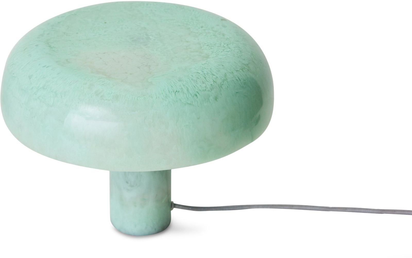 De Mushroom tafellamp van HKLIVING brengt een speels design en sfeervol licht samen in één opvallend object. Het ronde, paddenstoelvormige ontwerp is uitgevoerd in een gemarmerde mint tint, waardoor iedere lamp een uniek karakter krijgt. Dankzij het compacte formaat komt de lamp mooi tot zijn recht op een dressoir, nachtkastje of bijzettafel en vormt hij zowel overdag als ’s avonds een stijlvol accent in het interieur.