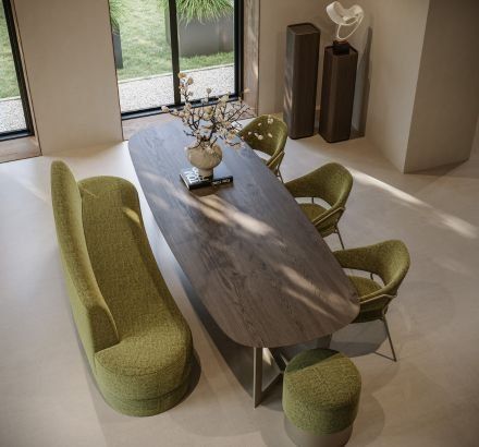Eetkamerbank Solo van Hofstede Raanhuis brengt rust en verfijning aan de eettafel. Het ontwerp kenmerkt zich door een robuuste basis in combinatie met een elegante rugleuning, waardoor Solo uitgroeit tot een stijlvolle blikvanger in de ruimte. De bank biedt een actieve, comfortabele zithouding aan tafel en weet functionaliteit moeiteloos te combineren met een eigentijdse uitstraling.