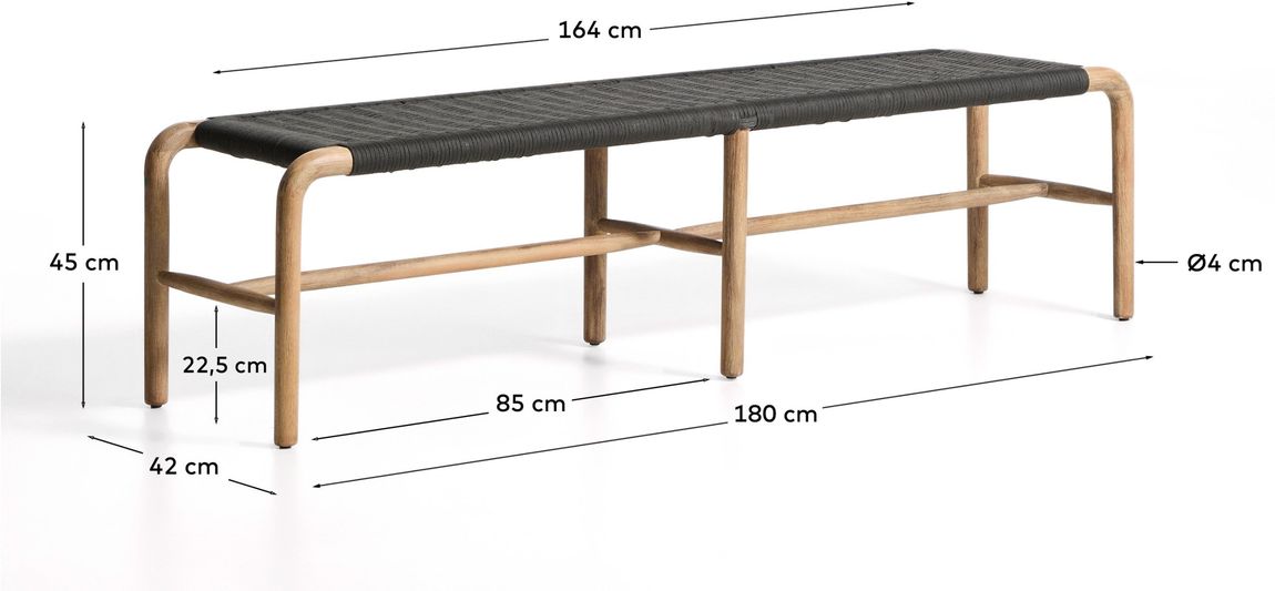 Het Alipa tuinbankje van Kave Home heeft een open en luchtige vormgeving waarin natuurlijke materialen centraal staan. Het houten frame in combinatie met het gevlochten touw van het zitvlak geeft de bank een warme uitstraling en zorgt voor stabiliteit. Door het tijdloze ontwerp is de Alipa geschikt voor verschillende buitenruimtes, van een ruim terras tot een compacte tuin. Een stijlvolle en praktische aanvulling voor buiten.