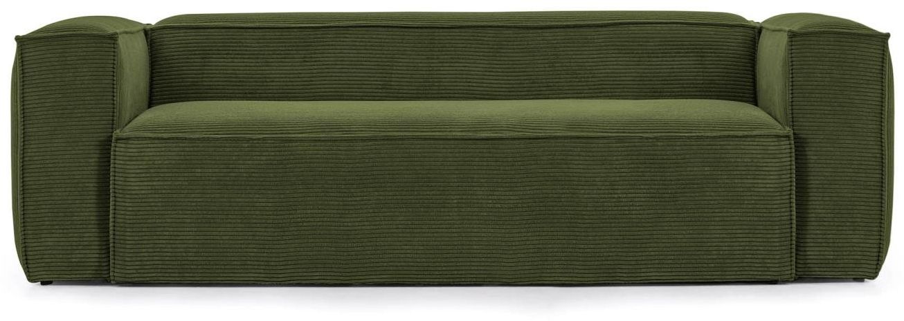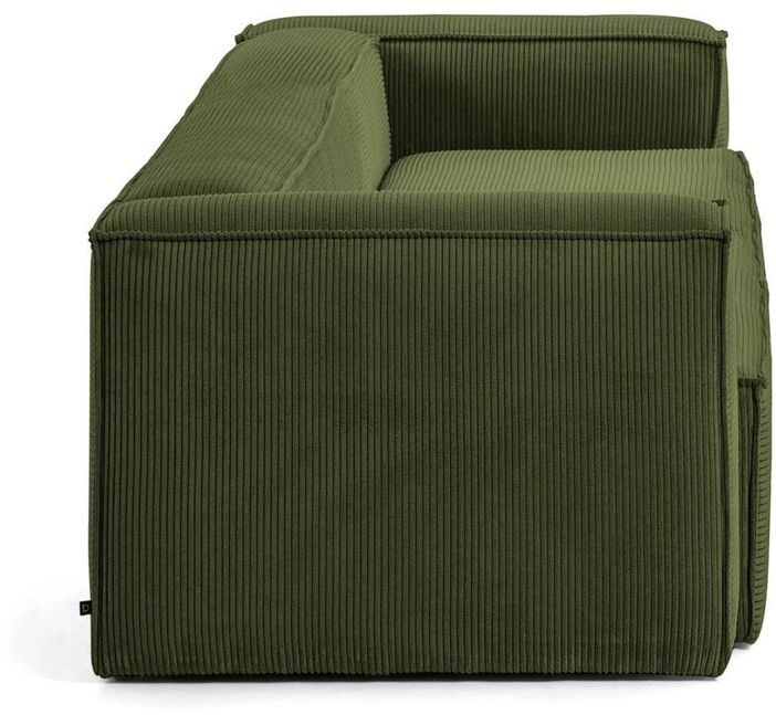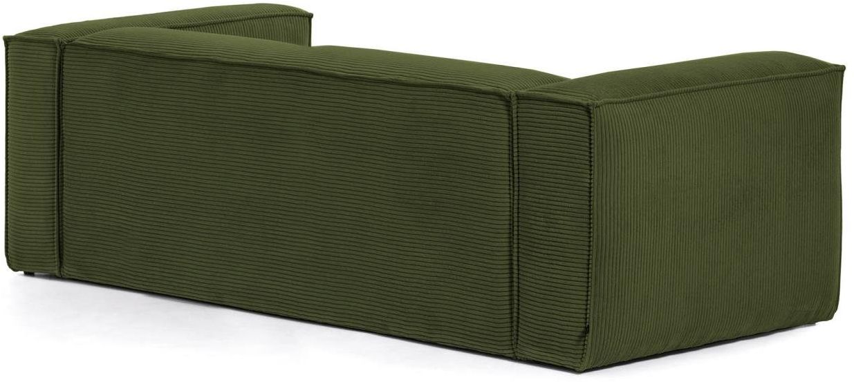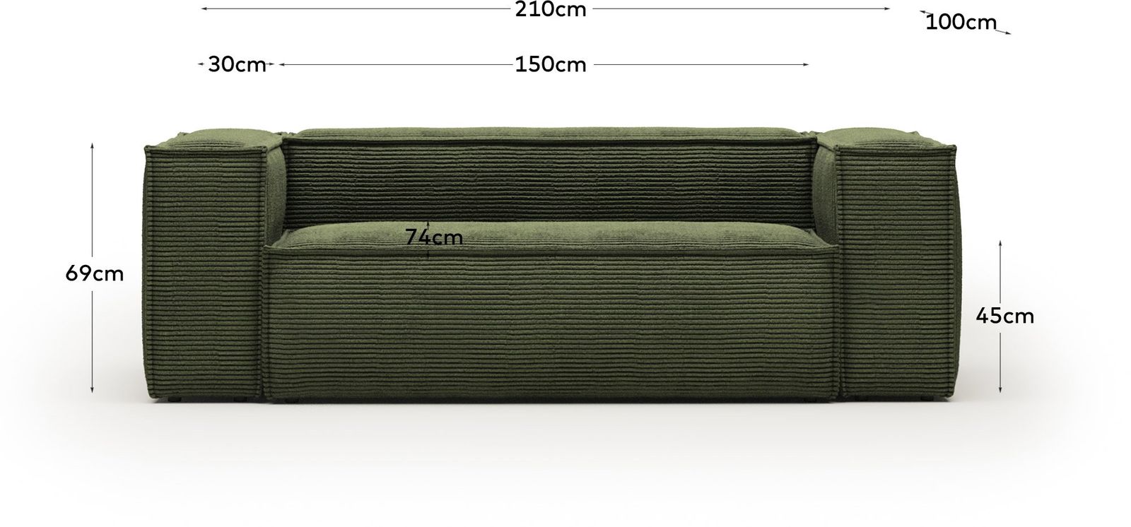 De Blok 2-zitsbank in dik groen ribfluweel van 210 cm breed is een stijlvol statement voor iedere woonkamer. De diepe groen tinten en zachte ribstructuur geven de bank een warme, luxe uitstraling. Brede proporties en strakke lijnen benadrukken het iconische design, terwijl de onzichtbare poten zorgen voor een luchtig effect.