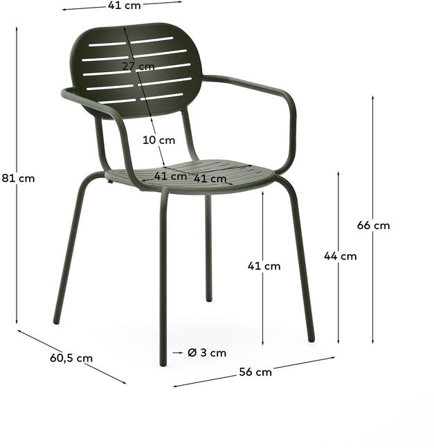 De Brai tuinstoel met armleuningen is een comfortabele aanvulling op iedere buitenruimte. Vervaardigd uit gegalvaniseerd staal met groene afwerking, biedt de stoel een hoge bestendigheid tegen slijtage en corrosie. Het stapelbare ontwerp maakt de stoel praktisch en ruimtebesparend. Bovendien is hij verkrijgbaar in meerdere varianten, zodat je eenvoudig een complete set samenstelt.