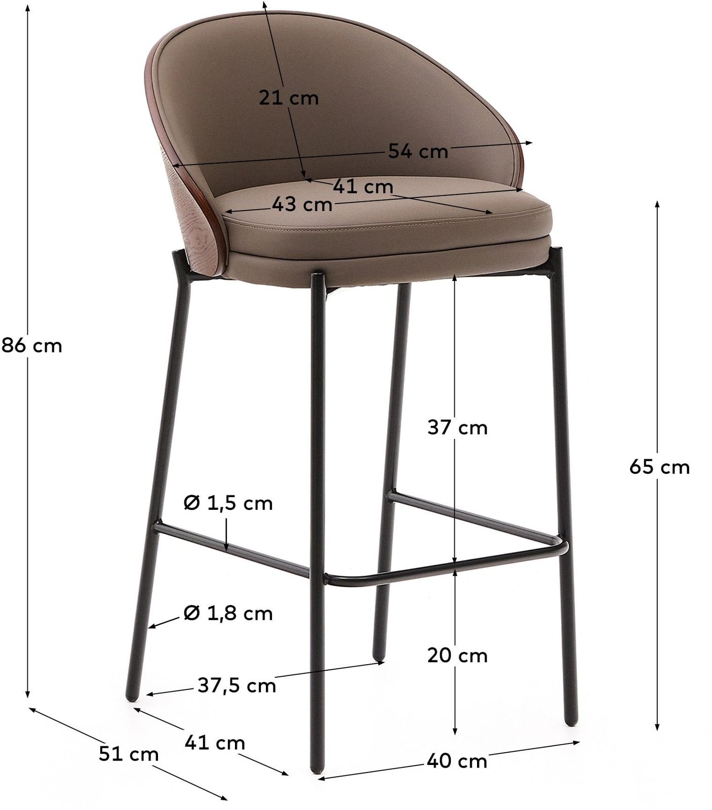 De Kave Home Eamy barkruk combineert comfort met een moderne uitstraling. De zitting in kunstleer is onderhoudsvriendelijk en geeft een strakke look, terwijl het ontwerp stabiliteit en gebruiksgemak biedt. Ideaal voor aan het kookeiland of de bar voor lange, gezellige momenten.