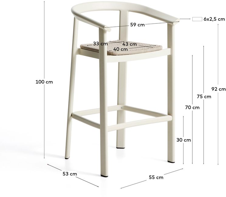 De Kave Home Erice Tuin Barkruk is een barkruk die geschikt is voor gebruik bij een hoge tuintafel of buitenbar. De zithoogte ondersteunt een comfortabele houding tijdens eten of drinken. De stabiele constructie zorgt voor veiligheid en duurzaamheid tijdens dagelijks gebruik. Door het ontwerp past de barkruk bij verschillende hoge tafels.