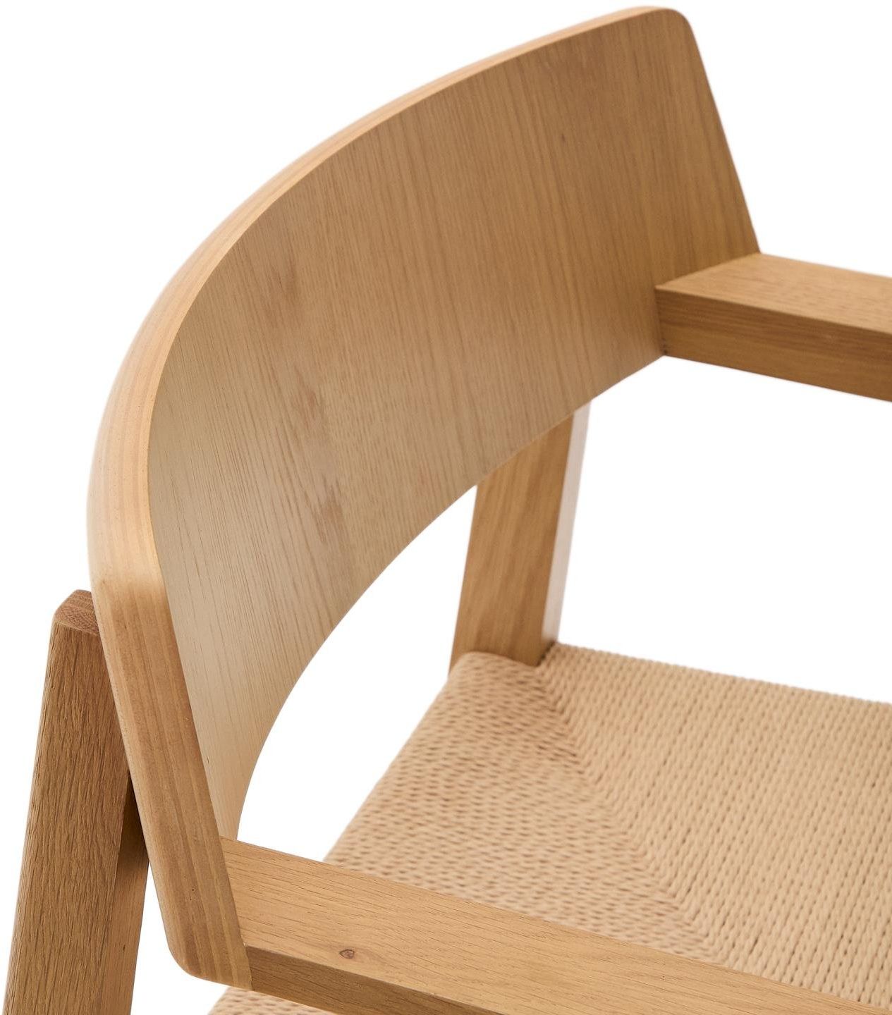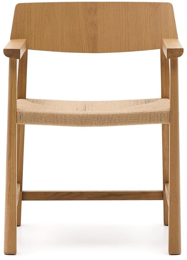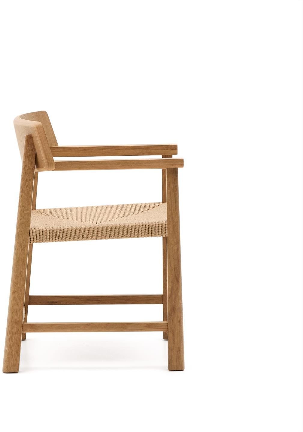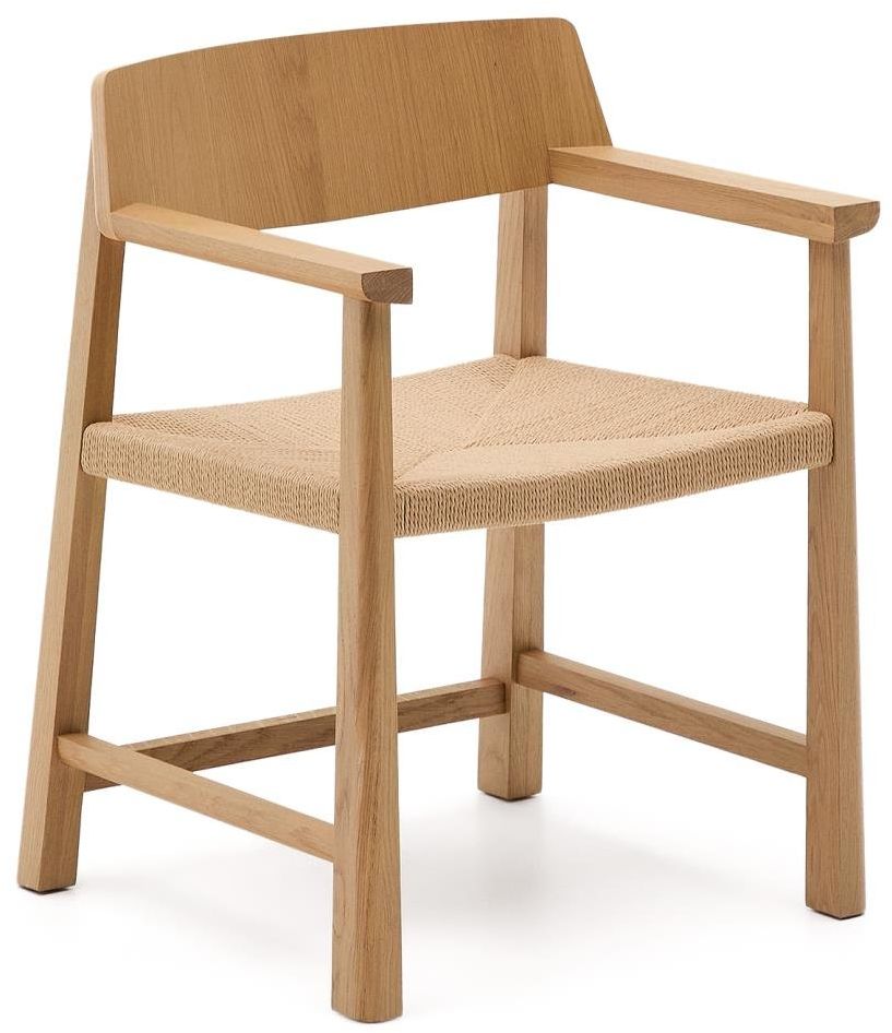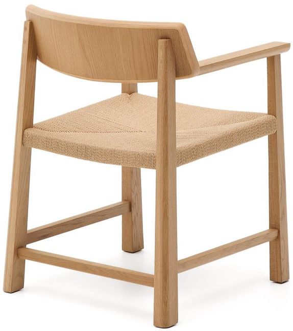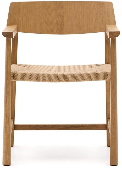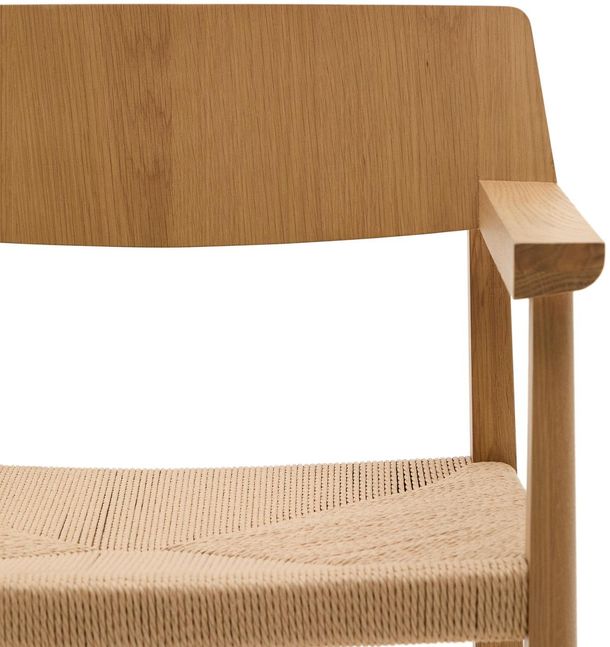 Ultiem Scandinavisch genieten doe je met eetkamerstoel Idun uit de collectie van Kave Home. Deze stoel ademt de eenvoud en rust van de Noorse woonstijl en brengt daarmee tijdloze elegantie in elke eetruimte. Het verfijnde design met geïntegreerde armleuningen biedt extra stevigheid en comfort, terwijl het gebogen onderstel zorgt voor een subtiel zachte zitervaring.