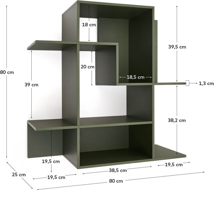De Kave Home Ina vakkenkast in MDF combineert een strak ontwerp met praktische indeling. De open vakken bieden volop ruimte om boeken, servies of decoratieve items te tonen, terwijl het minimalistische design zich moeiteloos aanpast aan verschillende interieurstijlen. Een functionele en stijlvolle toevoeging aan je woning.