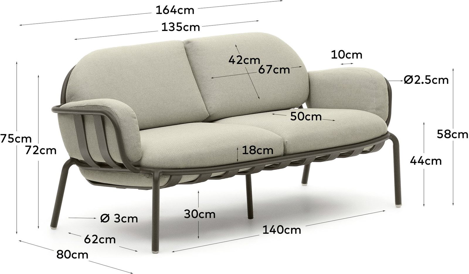 Kave Home Joncols 2-Zits Tuinbank