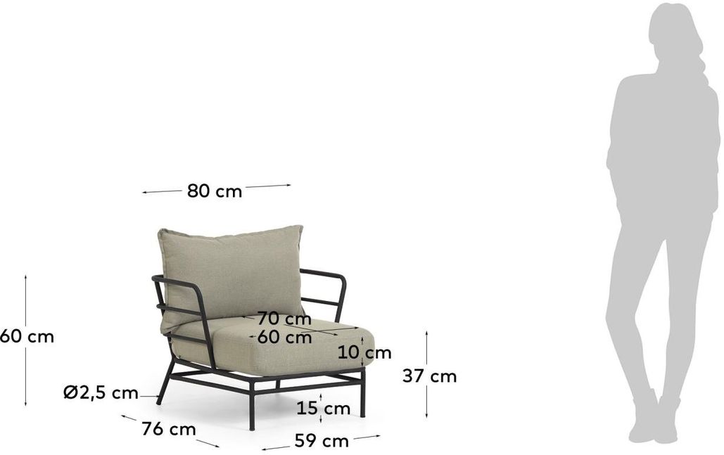 Met de Kave Home Mareluz fauteuil creëer je een comfortabele plek om te ontspannen in de tuin of op het terras. Het ontwerp heeft een moderne uitstraling en past mooi in verschillende outdoor settingen. Combineer de fauteuil met een salontafel of lounge set voor een gezellige zithoek.