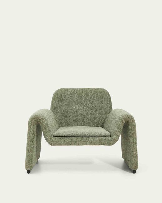 De Kave Home Melvia fauteuil brengt rust en verfijning samen in een modern ontwerp. De zachte chenillebekleding in een diepe groentint geeft de fauteuil een rijke textuur, terwijl de afgeronde vormen zorgen voor een uitnodigend silhouet. Een stijlvolle fauteuil die comfort, materiaalbeleving en eigentijds design op elegante wijze samenbrengt.
