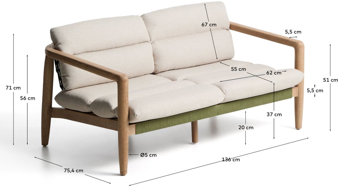 De Kave Home Menfi tuinbank creëert een gezellige plek om samen te zitten in de tuin. Ideaal voor lange zomeravonden met familie of vrienden. Combineer de bank met een tuintafel of fauteuils voor een uitnodigende buitenruimte waar iedereen graag samenkomt.