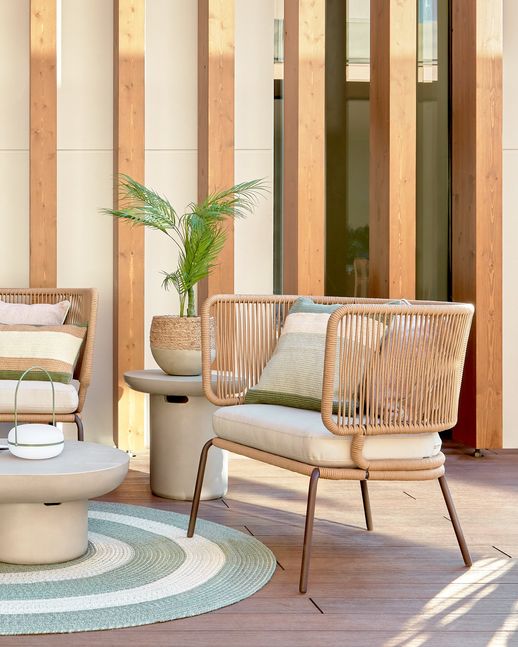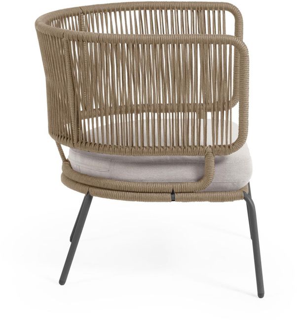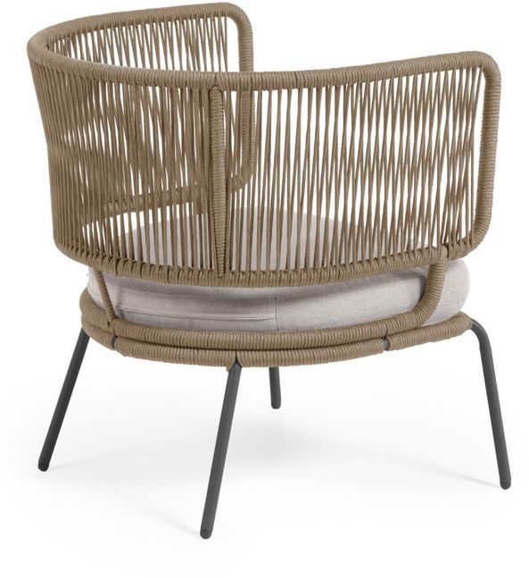 De Kave Home Nadin fauteuil zorgt voor een comfortabele zit plek in je tuin of op het terras. Het ontwerp heeft een moderne uitstraling en past ideaal binnen verschillende buitenstijlen. Combineer de fauteuil met een salontafel of tuinbank voor een complete loungehoek.