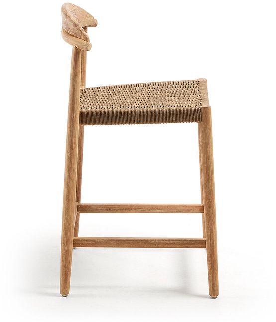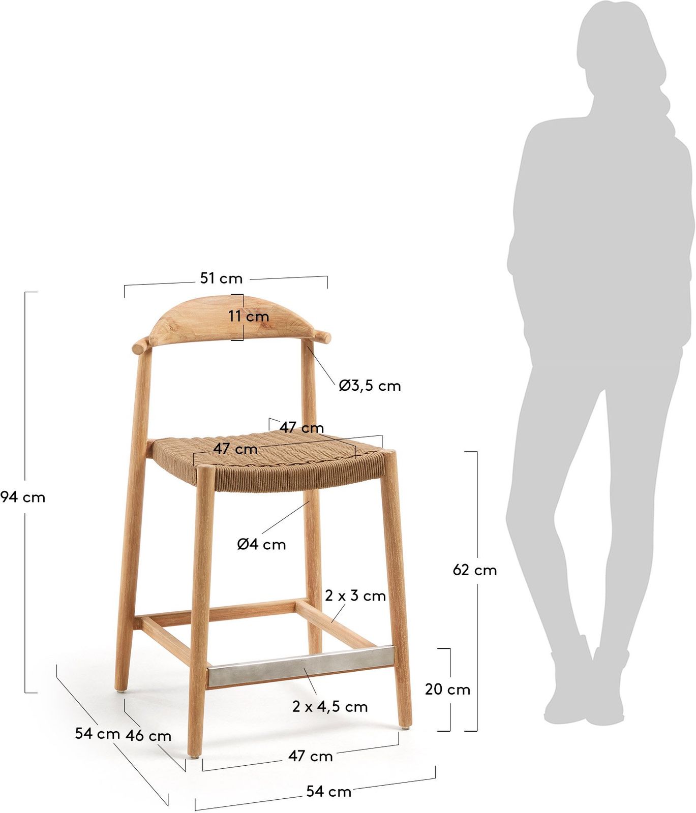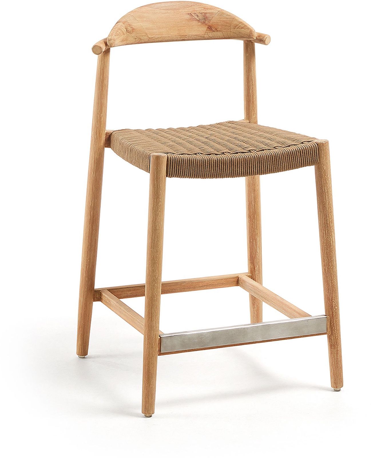 De Kave Home Nina tuin lage barkruk is ideaal voor een tuintafel of buitenbar. Hier geniet je van een drankje in de zon of een gezellige borrel met vrienden. Het ontwerp laat zich gemakkelijk combineren met andere outdoor meubels.