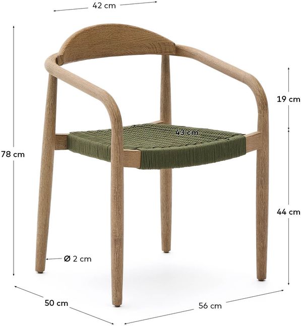 De Kave Home Nina tuinstoel brengt comfort en stijl naar je tuin of terras. Het ontwerp past ideaal bij verschillende tuintafels en zorgt voor een uitnodigende plek om samen te eten of te ontspannen. Zo creëer je eenvoudig een gezellige buitenruimte.