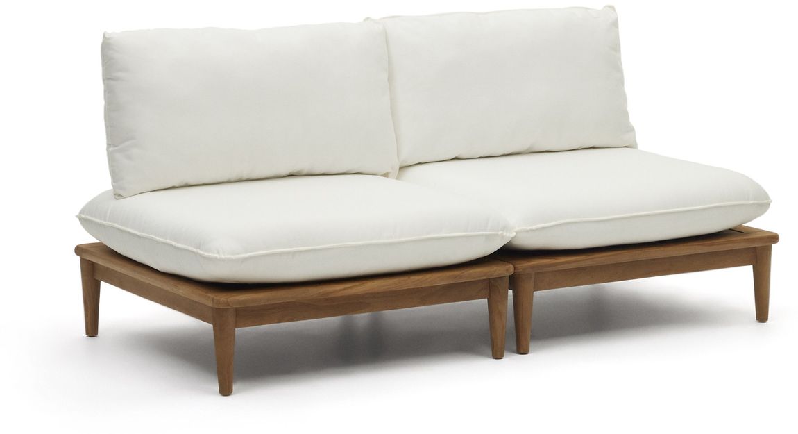Met de Portitxol Tuinstoel van Kave Home richt je jouw buitenruimte in als een designer. Deze set van twee modulaire fauteuils, gemaakt van massief teakhout, wordt geleverd met kussens en laat zich eindeloos combineren. Duurzaam, vochtbestendig en stijlvol: geschikt voor binnen, overdekte terrassen of tuinen. Ontwerp moeiteloos jouw eigen outdoor lounge.