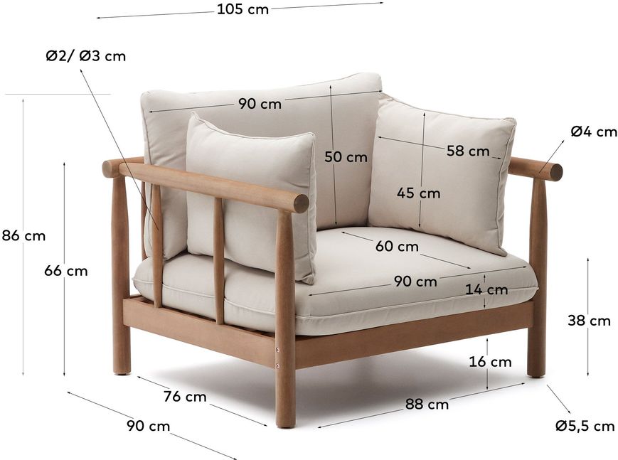 De Kave Home Sacova fauteuil brengt comfort en een moderne uitstraling naar je tuin of terras. De fauteuil vormt een fijne plek om even tot rust te komen met een boek of drankje. Combineer hem met andere lounge meubels voor een gezellige zithoek.