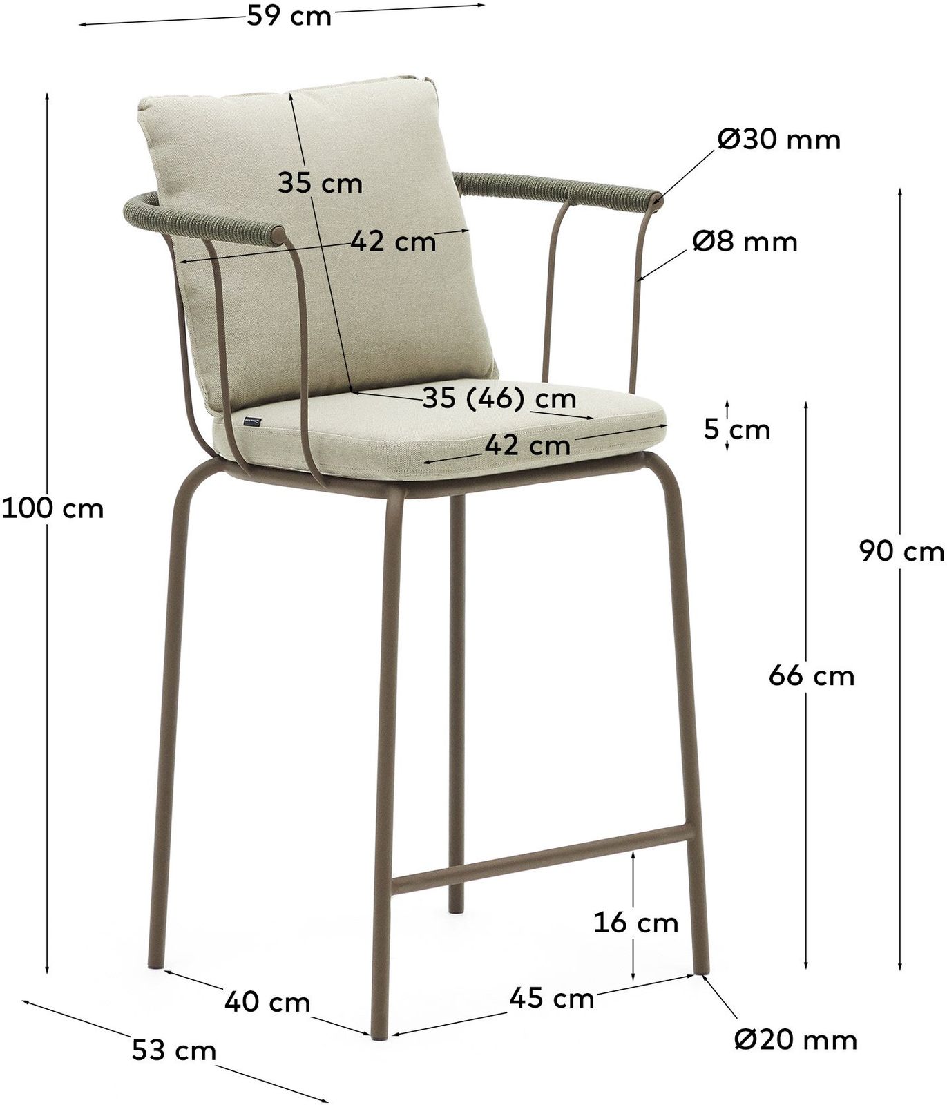 De Kave Home Salguer tuin barkruk is ideaal voor een hoge tuintafel of buitenbar. Hier geniet je van een drankje in de zon of een gezellige borrel in de avond. Het ontwerp combineert eenvoudig met andere tuinmeubels.