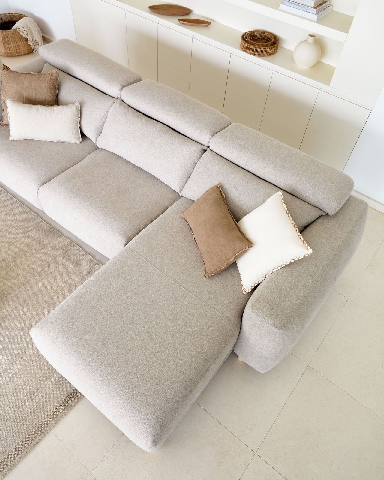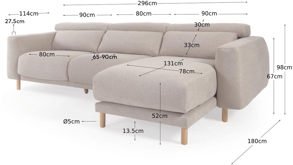 3-zitsbank Singha van Kave Home brengt rust, comfort en verfijnd design samen. De bank ademt Scandinavische eenvoud, dankzij de zachte beige bekleding en het luchtige silhouet. De Singha heeft slimme functies zoals verstelbare hoofdsteunen en een uitschuifbare zitting voor optimaal loungen.