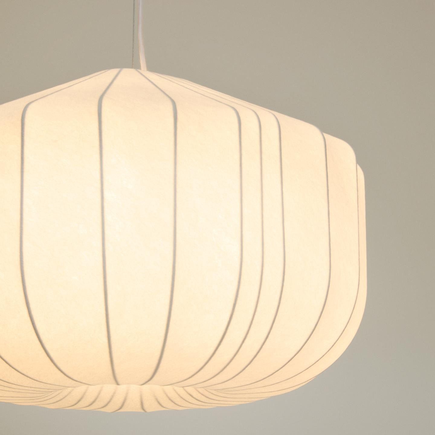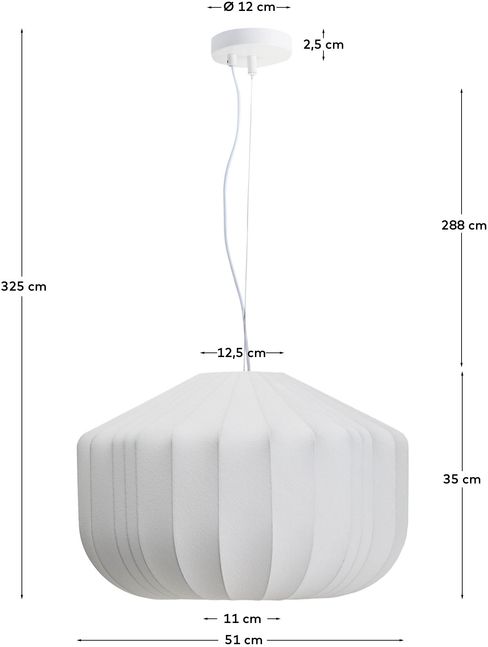 De Kave Home Somar hanglamp combineert innovatief materiaalgebruik met een verfijnde, sculpturale vorm. De kap, opgebouwd uit synthetische vezels over een stalen frame, creëert een licht en gelaagd effect dat het licht zacht verspreidt. Het organische ontwerp geeft de lamp een eigentijdse uitstraling met een subtiele verwijzing naar klassieke vormen.