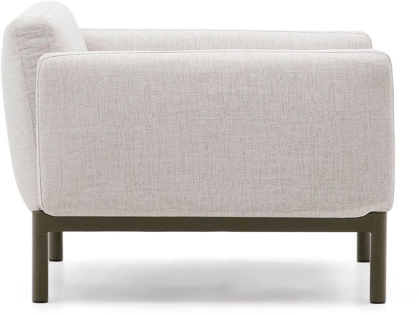De Kave Home Sorells fauteuil combineert zitcomfort met een moderne uitstraling. De zachte zitting en de armleuningen zorgen voor extra gemak, terwijl het stevige metalen onderstel stabiliteit biedt. De stoel is bekleed met polypropyleen stof, een materiaal dat zowel sterk als onderhoudsvriendelijk is. Ideaal om buiten te gebruiken en je terras of tuin een stijlvolle uitstraling te geven.