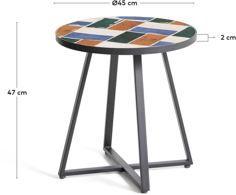 Met de Kave Home Tella bijzettafel heb je altijd een handige plek voor een drankje of boek naast je zit plek buiten. Dankzij het compacte formaat plaats je de tafel eenvoudig bij een fauteuil, ligstoel of lounge set.