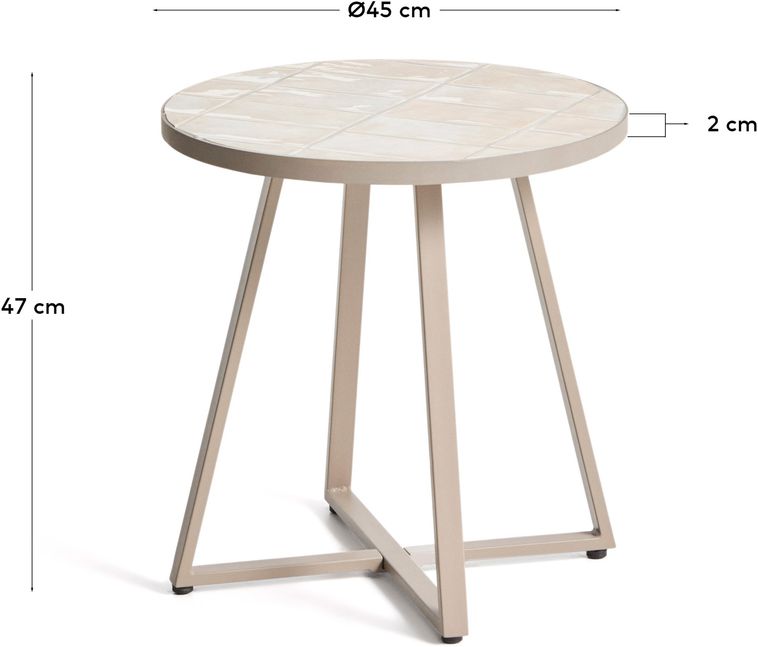 Met de Kave Home Tella bijzettafel heb je altijd een handige plek voor een drankje of boek naast je zit plek buiten. Dankzij het compacte formaat plaats je de tafel eenvoudig bij een fauteuil, ligstoel of lounge set.