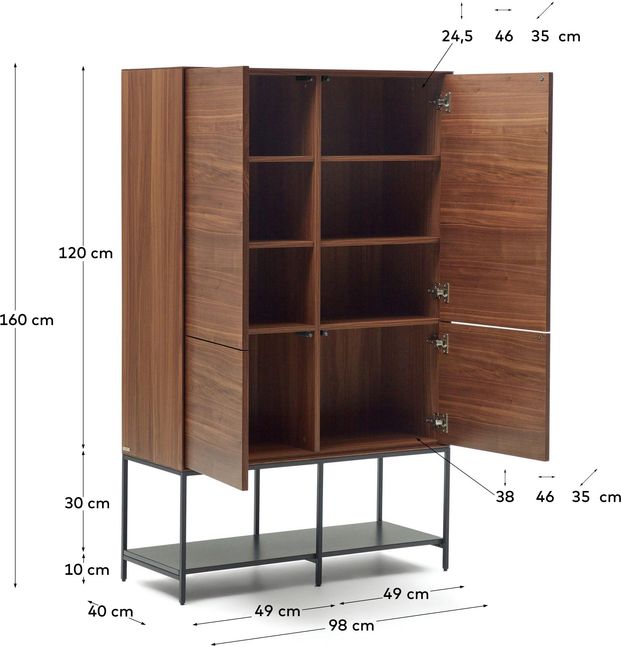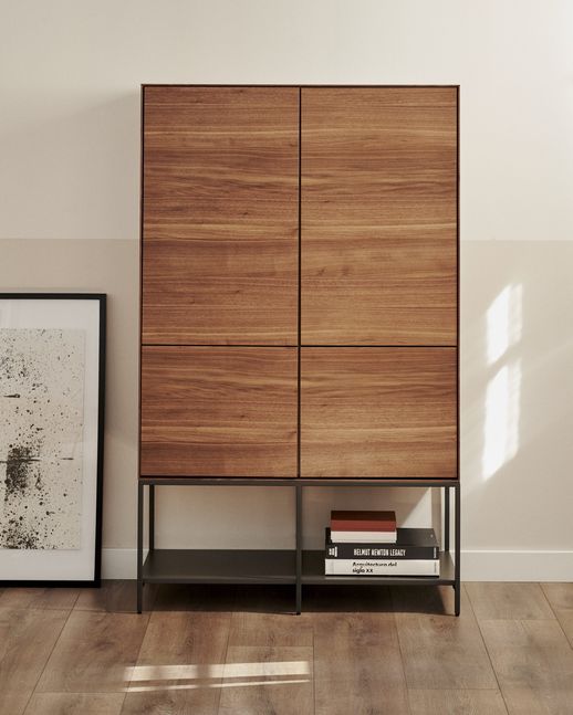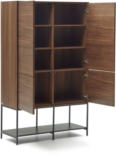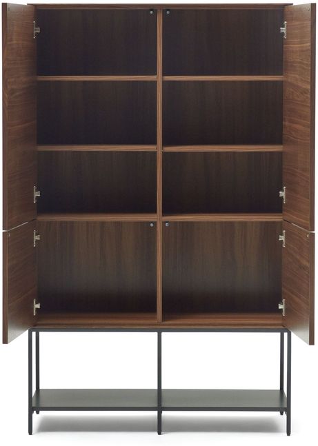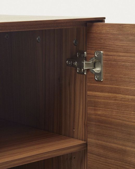 Buffetkast Vedrana van Kave Home is een moderne kast met een warme en karaktervolle uitstraling. Het meubel is uitgevoerd in een diepe walnoothoutlook, die zorgt voor een rijke en sfeervolle toevoeging aan de woonruimte. In combinatie met het zwarte onderstel ontstaat een tijdloos en krachtig geheel dat in verschillende interieurstijlen tot zijn recht komt. De kast bestaat uit een ruim boven- en ondergedeelte, waardoor er volop mogelijkheden zijn om spullen zowel op te bergen als overzichtelijk te organiseren.