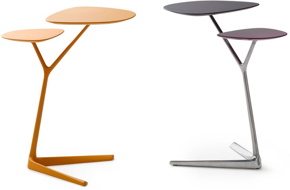 Bijzettafel Portello van Leolux is verkrijgbaar met een bovenblad uitgevoerd in lak of massief eiken. Het frame is uit te voeren in diverse kleuren in aluminum, lak of epoxy.