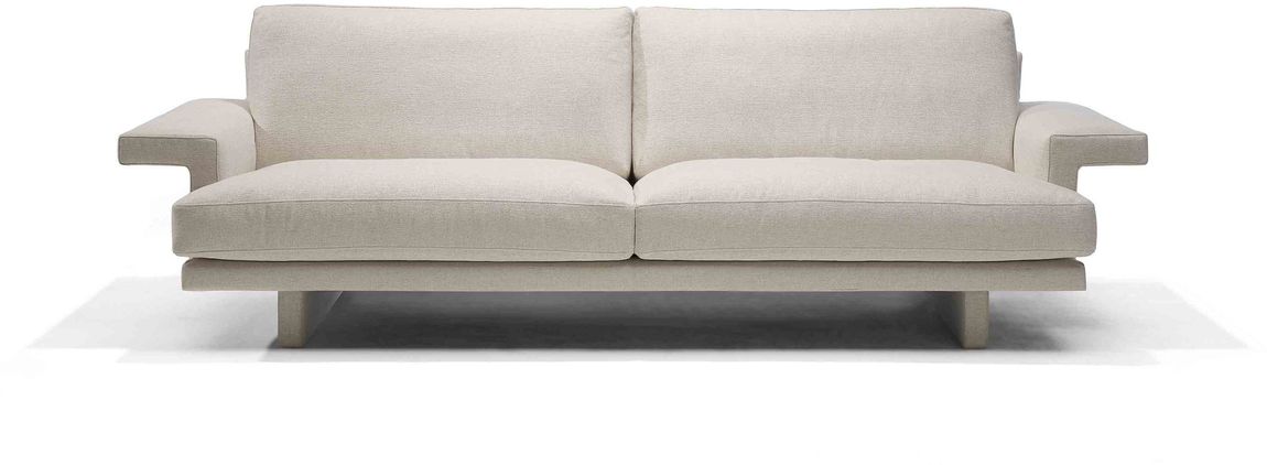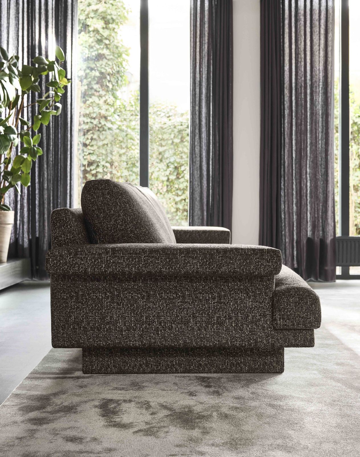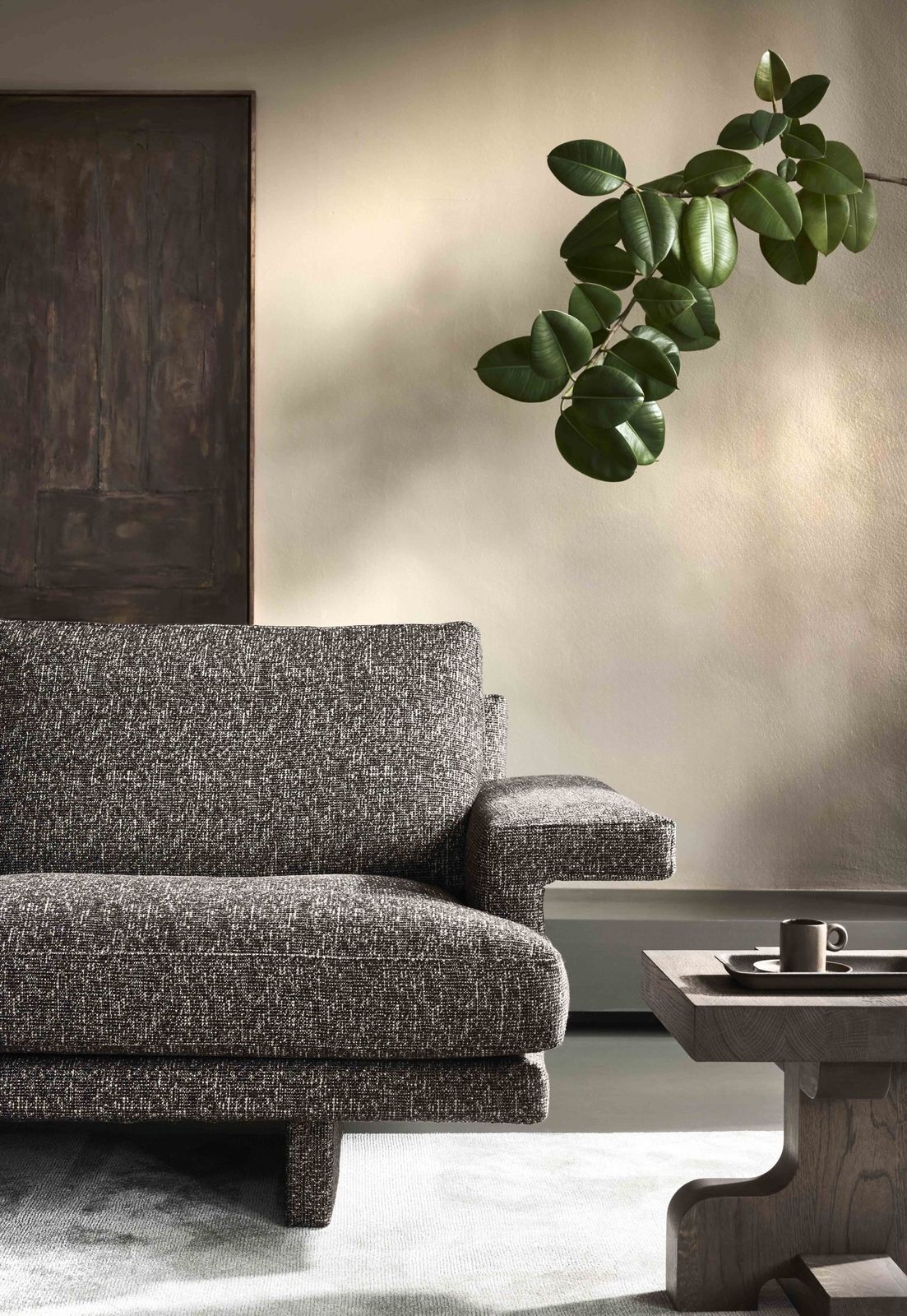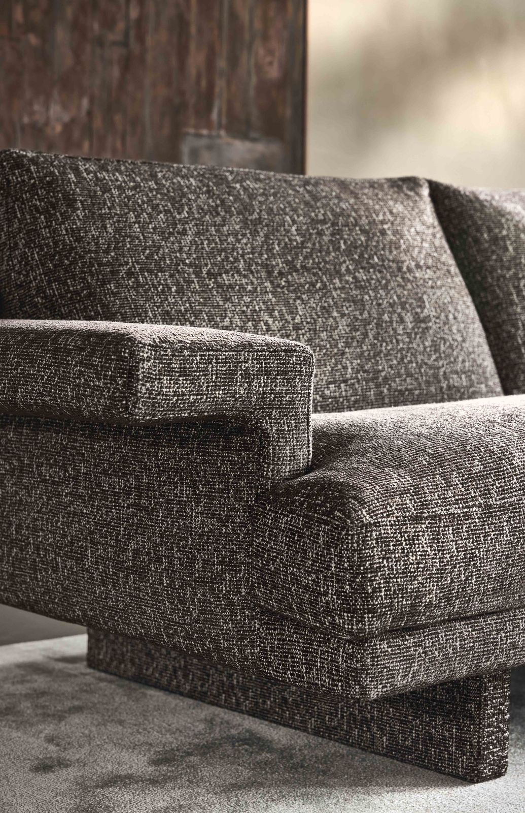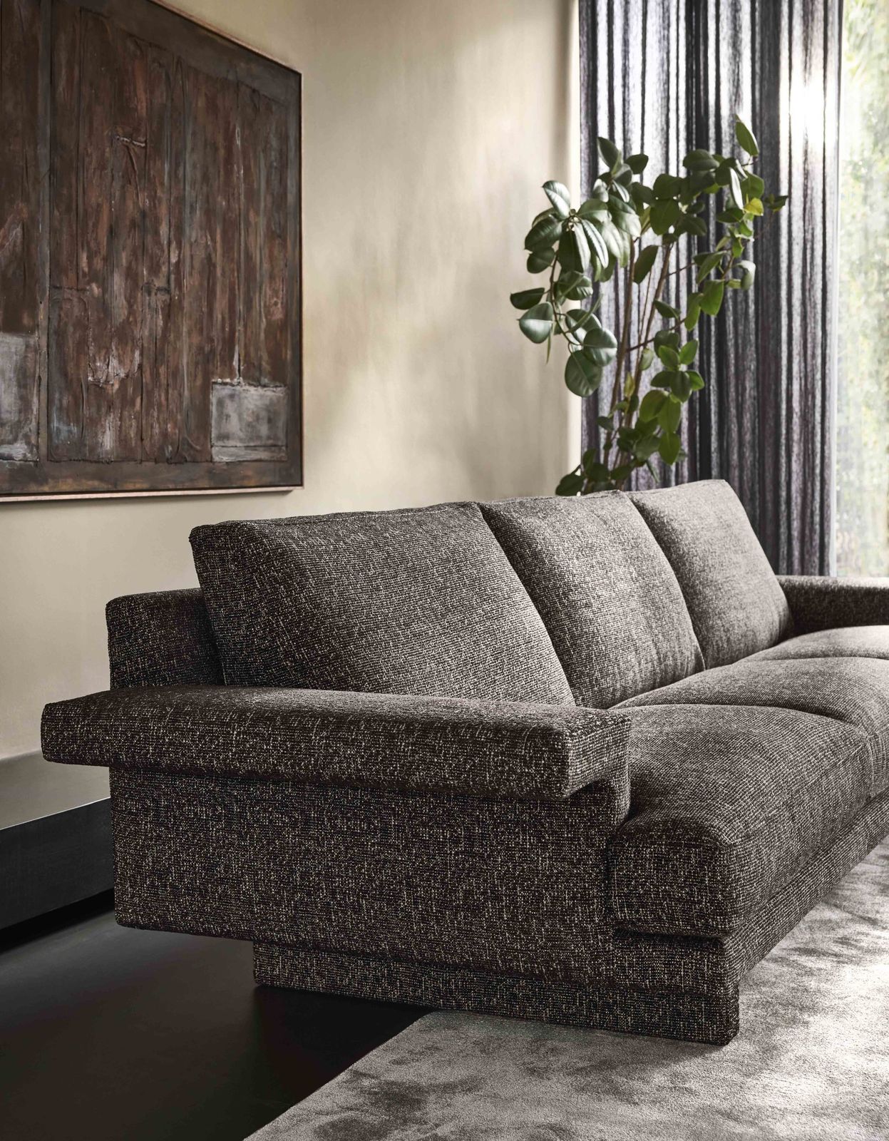 De strakke belijning van de bank loopt naadloos door in het gestoffeerde slede-onderstel, wat zorgt voor een krachtig en samenhangend geheel. Tegelijkertijd bieden de royale zit- en rugkussens een uitnodigend comfort, waarbij vorm en functionaliteit perfect in balans zijn. Net als het architectonische voorbeeld is Frank niet alleen visueel sterk, maar ook ontworpen voor dagelijks gebruik.