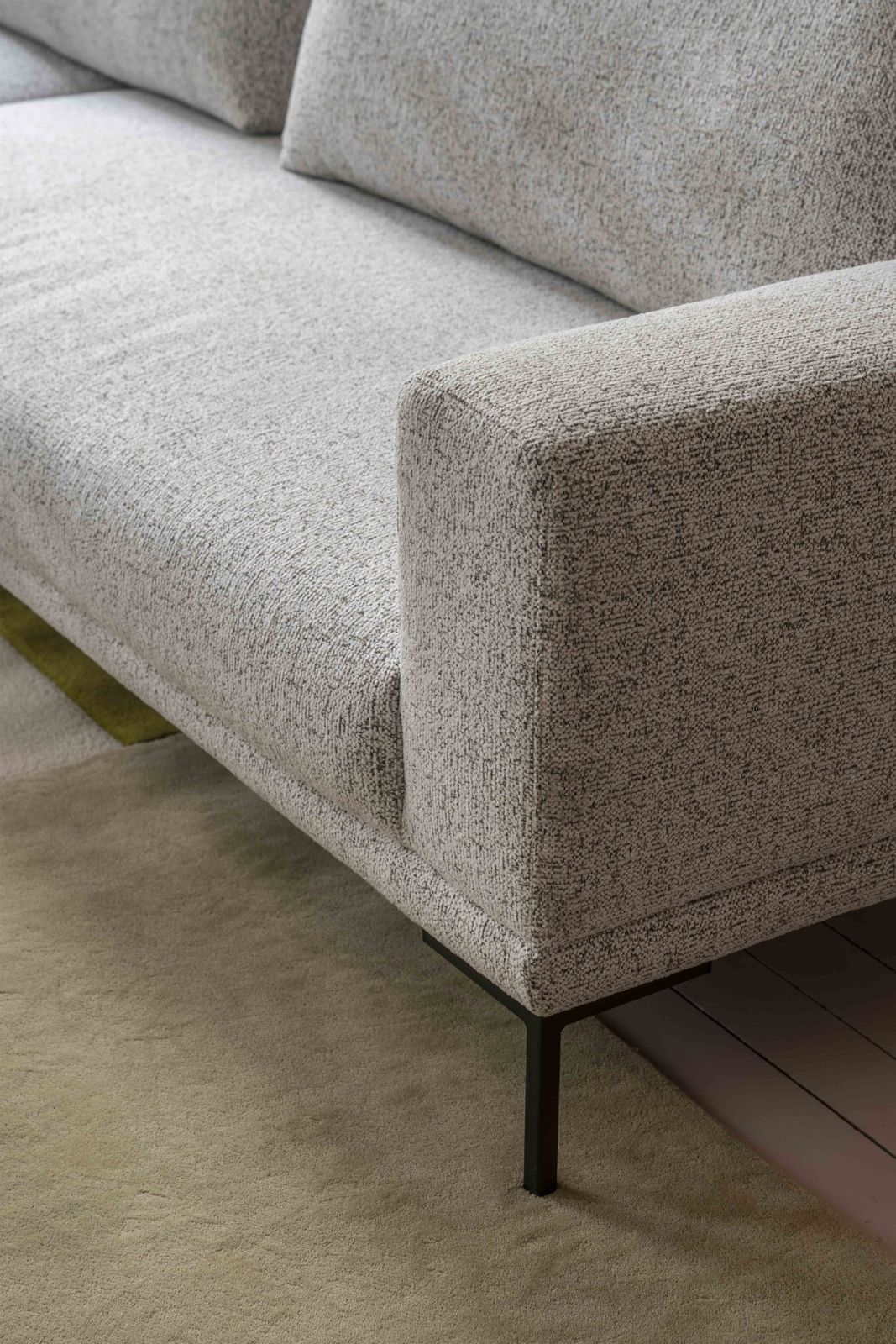Hoekbank 40-2 van Montèl combineert een rank design met een krachtig karakter. Het tijdloze ontwerp valt op door de royale, diepe zit die uitnodigt om heerlijk te ontspannen na een lange dag. De bank is uitgevoerd in de exclusieve stof Monarch in een stijlvolle grijstint, waarmee 40-2 een rustpunt vormt binnen het interieur. De losse rugkussens geven het geheel een speels accent en kunnen eenvoudig worden opgeklopt voor optimaal zitcomfort.