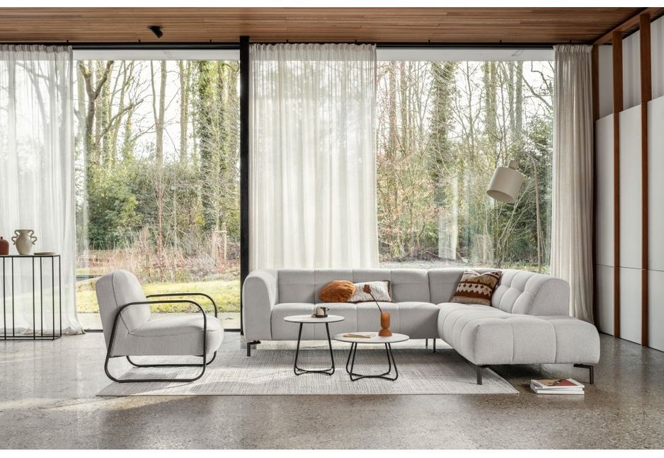 Hoekbank Furious van Montèl is een stijlvolle én comfortabele toevoeging aan uiteenlopende interieurstijlen. De bank is uitgevoerd in een lichte grijstint en staat op zwarte pootjes, wat zorgt voor een klassieke uitstraling. De gecapitonneerde details geven Furious een verfijnde touch, zonder dat het ontwerp zijn rustige en moderne karakter verliest.