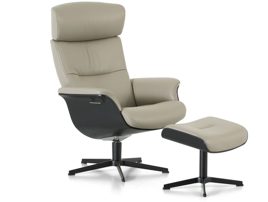 Met relaxfauteuil Luxor met hocker van Montèl staat ultiem zitcomfort centraal. De verstelbare hoofdsteun en lay-backfunctie nodigen uit om volledig te ontspannen, terwijl de bijpassende hocker extra comfort biedt voor lange, relaxte momenten. De combinatie van een lederen bekleding en zwarte frame geeft Luxor een stijlvolle en tijdloze uitstraling.