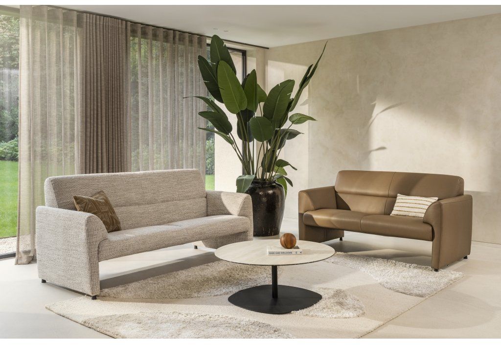 3-Zitsbank Mondi van Montèl is een krachtige en comfortabele toevoeging aan de woonruimte. De hoge rugleuning ondersteunt een stabiele zithouding, terwijl het kenmerkende ontwerp zorgt voor een stoere en eigentijdse uitstraling. Dankzij het open karakter en de twee ranke onderstellen oogt de bank luchtig en ruimtelijk, waardoor Mondi moeiteloos opgaat in diverse interieurstijlen.