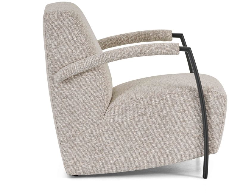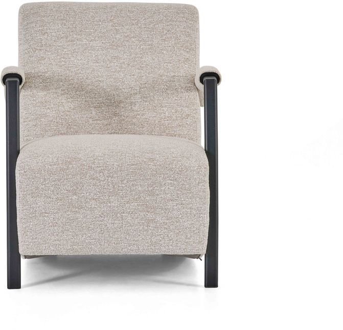 Fauteuil Suzy van Montèl combineert een modern karakter met een tijdloze uitstraling. De zachte, crèmekleurige bekleding maakt de fauteuil de ideale toevoeging aan een eigentijds interieur, terwijl het ontwerp ook moeiteloos samengaat met stoerdere accessoires, zoals een industriële vloerlamp. De gecapitonneerde armleuningen zorgen voor extra comfort, terwijl de zwarte accenten een krachtig contrast creëren.
