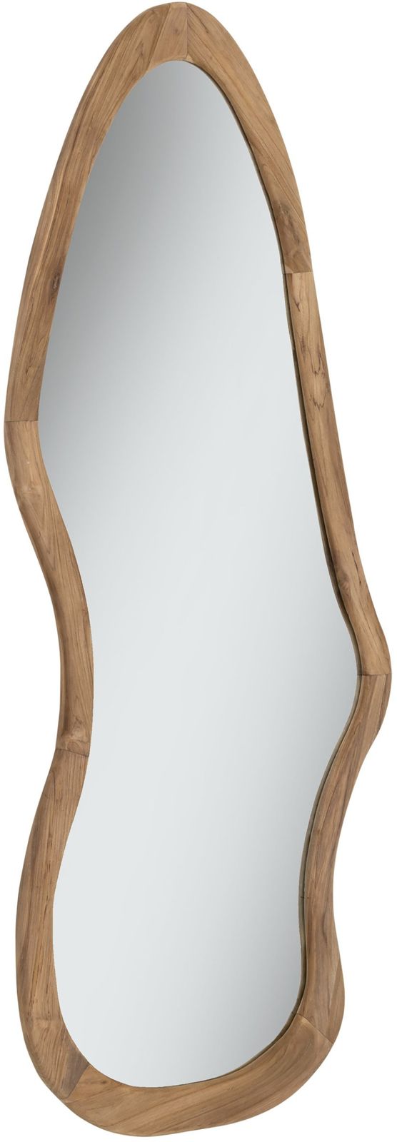 Spiegel Mateo van MUST Living is een speelse en stijlvolle toevoeging aan de woonruimte die optisch extra ruimte creëert. Het organisch gevormde frame, uitgevoerd in naturel teakhout, geeft de spiegel een warme en karaktervolle uitstraling en maakt hem tot een echte blikvanger in het interieur. Met zijn royale hoogte van 2 meter is Mateo perfect om tegen de muur te plaatsen en een modieus accent te creëren in bijvoorbeeld de hal, slaapkamer of woonkamer.