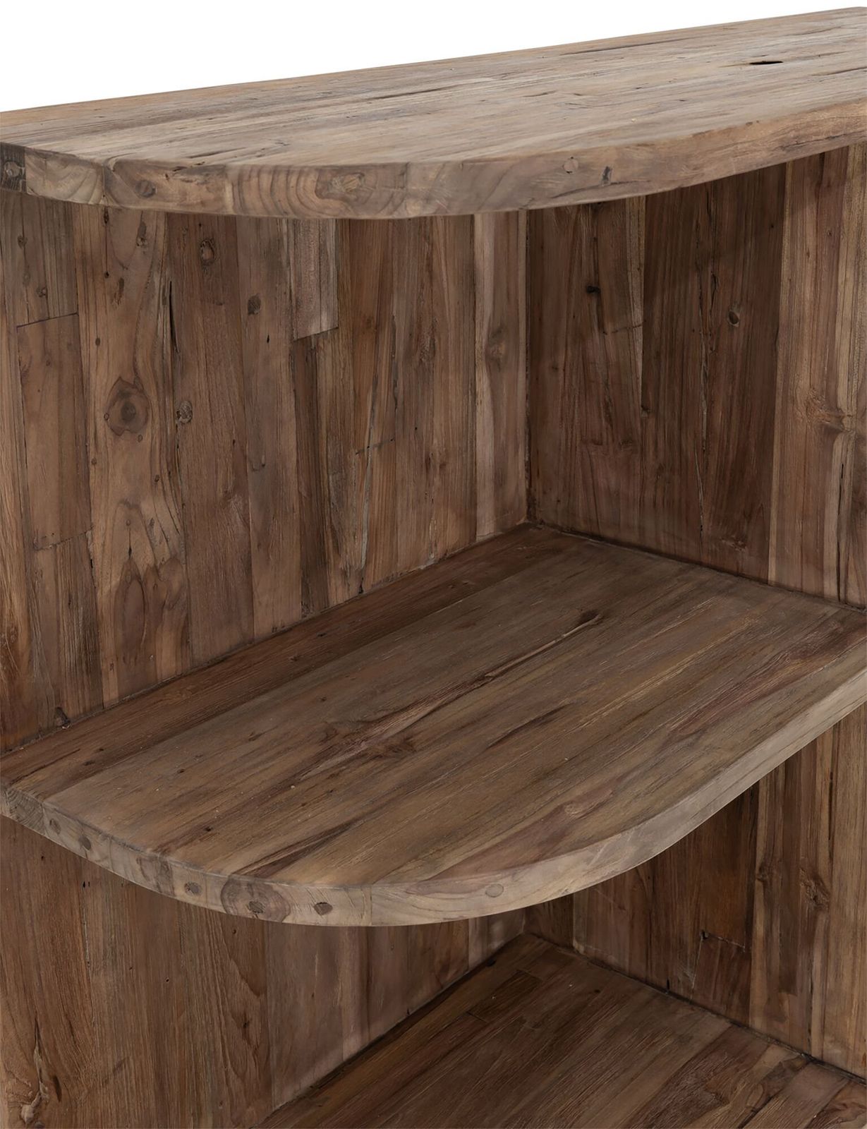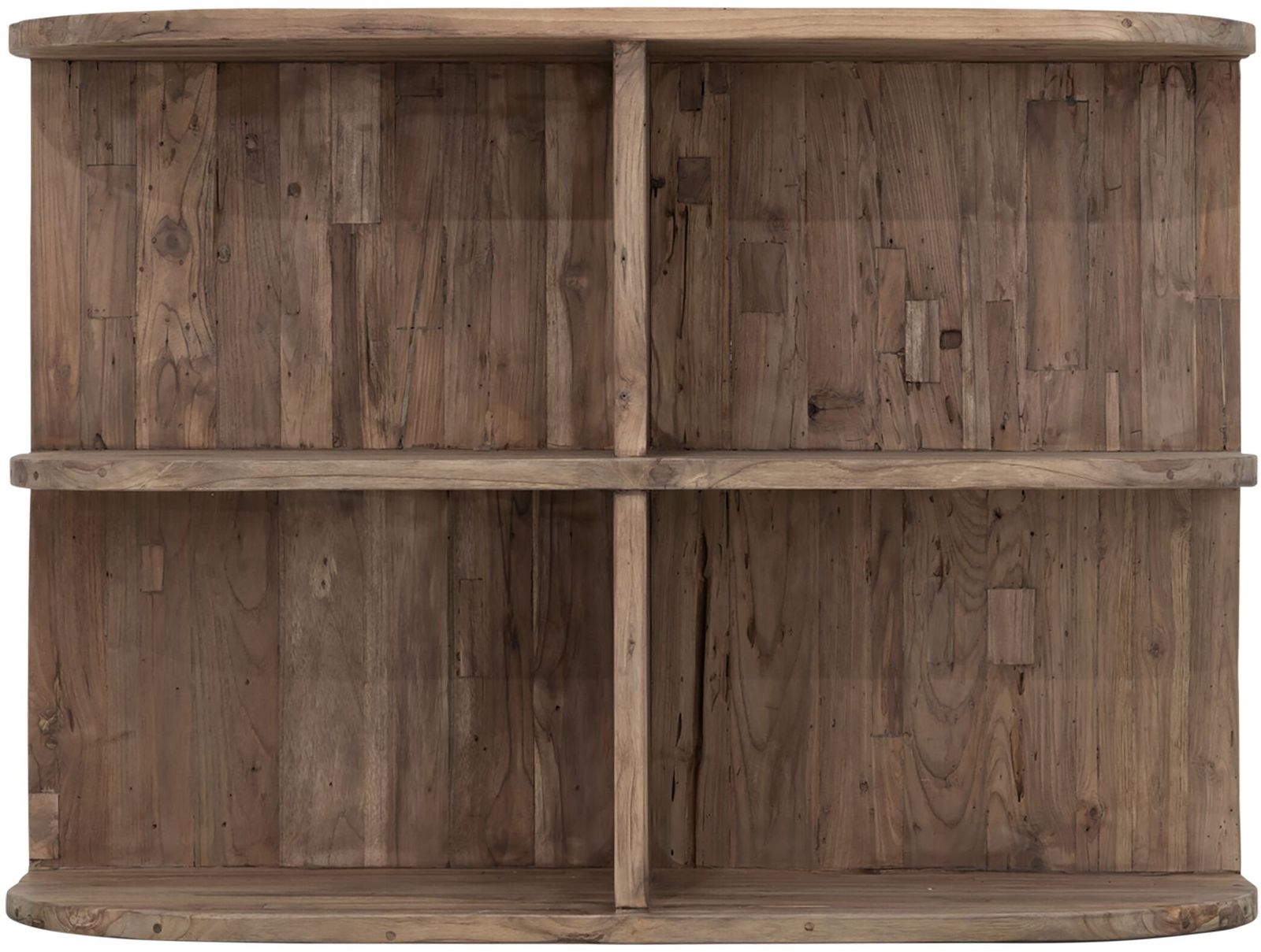Breng natuurlijke materialen samen met dressoir Rush van MUST Living. Dit model is vervaardigd uit gerecycled teakhout en heeft afgeronde hoeken die zorgen voor een zachte, organische vorm. De open vakken bieden voldoende ruimte voor decoratie, servies of boeken. Rush is ideaal als opbergmeubel in de woonkamer of hal en combineert functionaliteit met een tijdloos ontwerp.