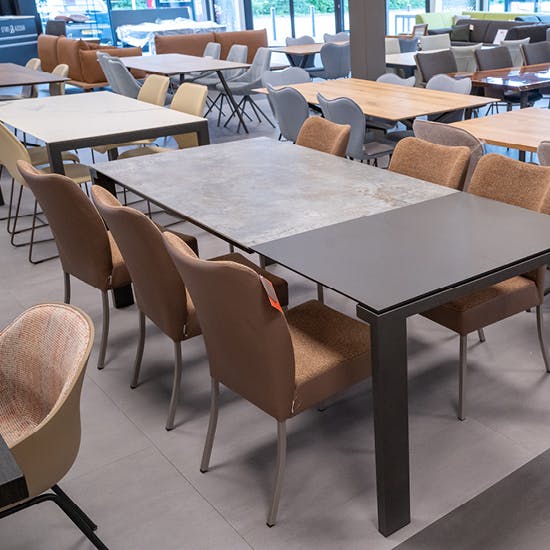 Profiteer van kortingen tot 70% op alle soorten eettafels in onze outlet in Zutphen. Ontdek het wisselende aanbod in ronde eettafels, ovale eettafels, rechthoekige eettafels, uitschuifbare eettafels en meer in onze winkel.