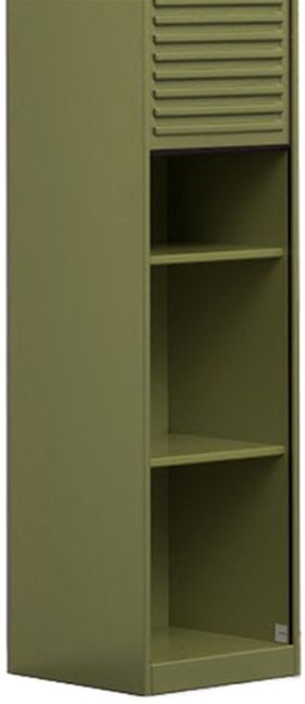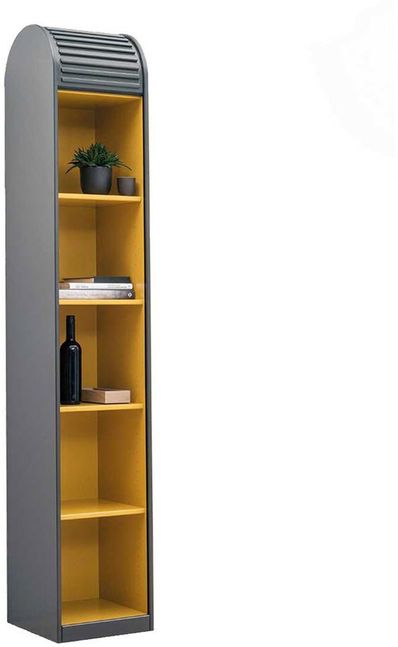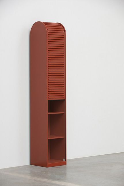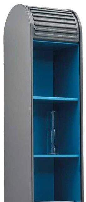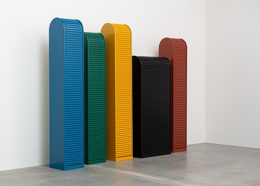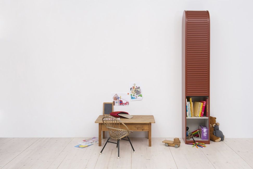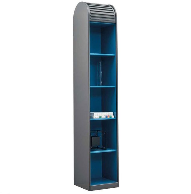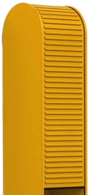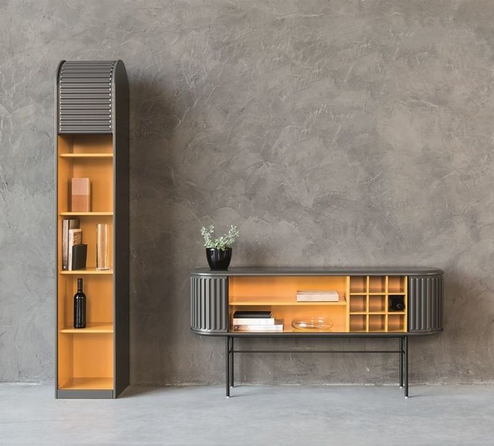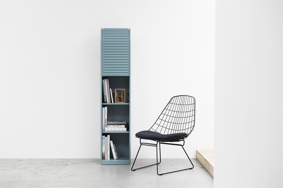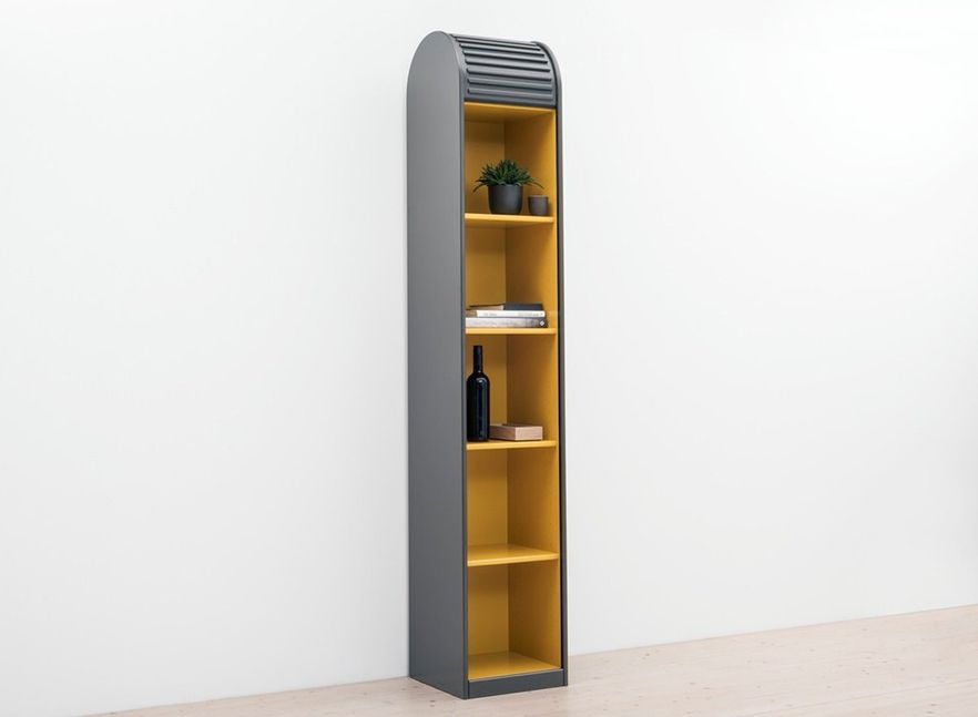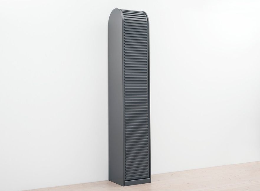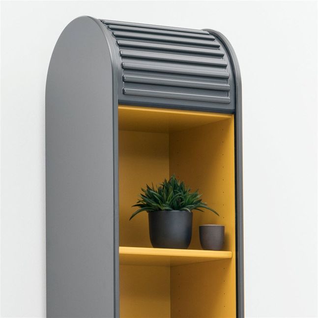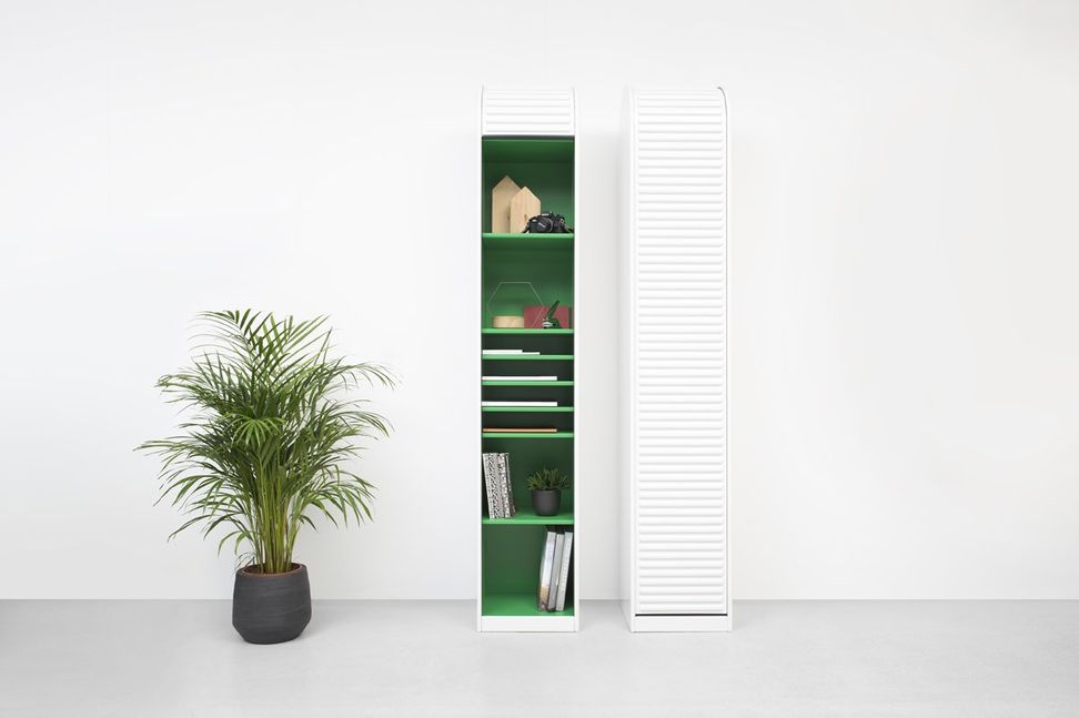 De geribbelde A’dammer kast is direct herkenbaar, de schuifdeur kan naar boven worden geschoven waarna deze verdwijnt in de achterkant van de kast. Door de ribbels heeft u altijd grip, op welke hoogte dan ook. Het ontwerp van de kast wordt versterkt door de ronde bovenkant van de kast. A’dammer is vervaardigd van MDF en kunststof.