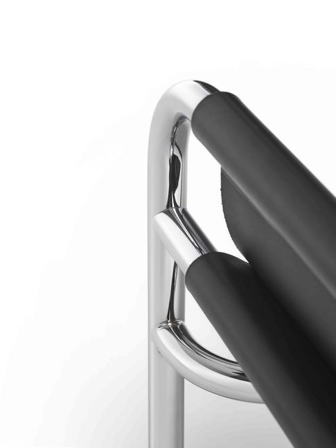 Fauteuil SZ is vervaardigd uit een slank, elegante buizenframe en te voorzien van een zitting en rugleuning in pitriet of in tuigleer.