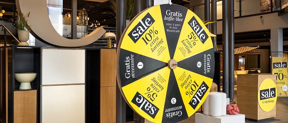 Bezoek onze winkels en maak jouw korting nóg aantrekkelijker! Draai bij binnenkomst aan het rad en maak kans op extra korting op jouw favoriete showroommodel.
