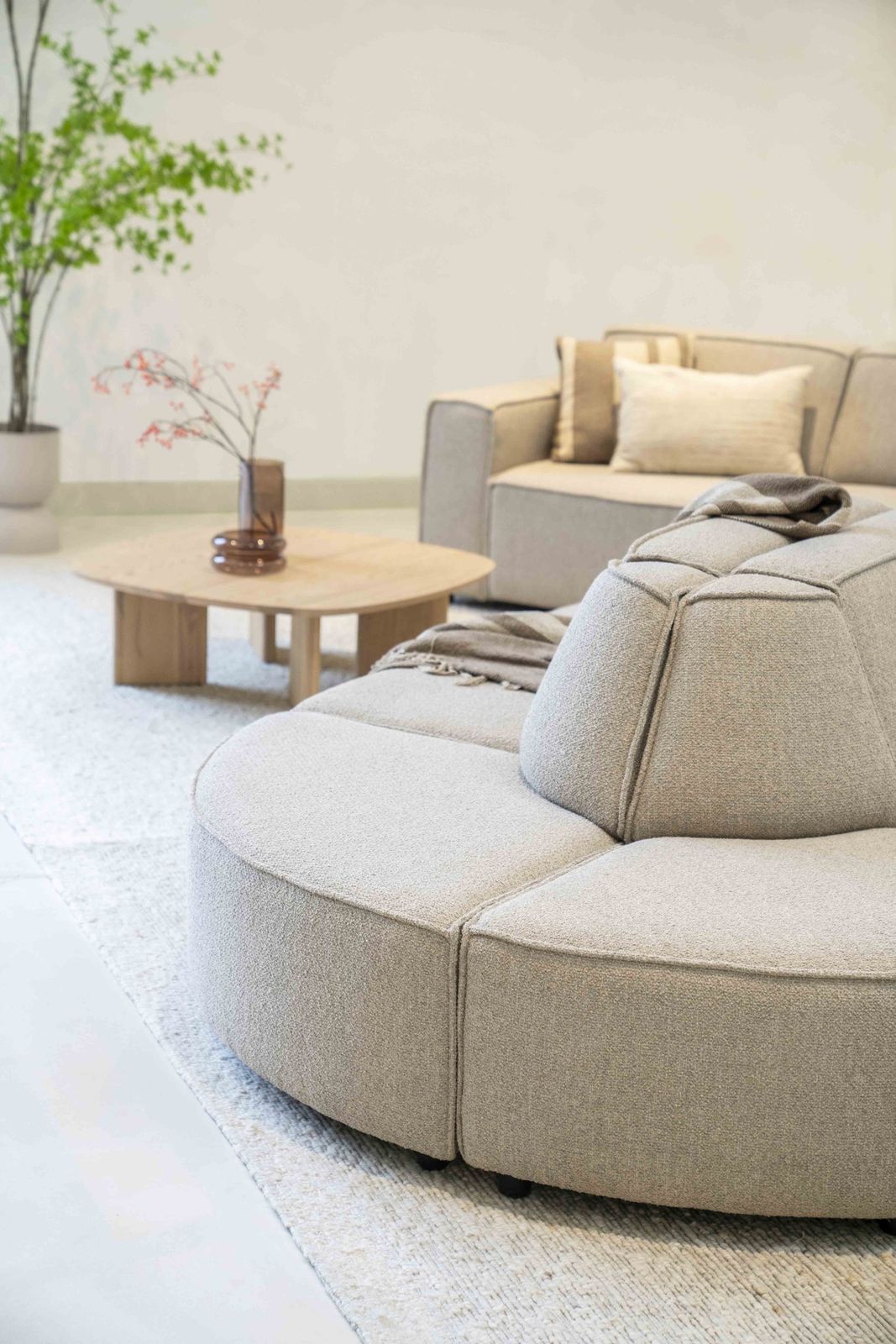 Hoekbank Marike van Sevn staat voor minimalistisch design en hoogwaardig zitcomfort. De strakke vormgeving zorgt voor een tijdloze uitstraling die moeiteloos past in uiteenlopende interieurstijlen. Dankzij het modulaire karakter kun je de indeling eenvoudig aanpassen, ideaal wanneer je toe bent aan een nieuwe opstelling in de woonruimte. Het rustige ontwerp vormt bovendien een perfecte basis voor speelse woonaccessoires, zoals ronde sierkussens, om de strakke lijnen subtiel te doorbreken.